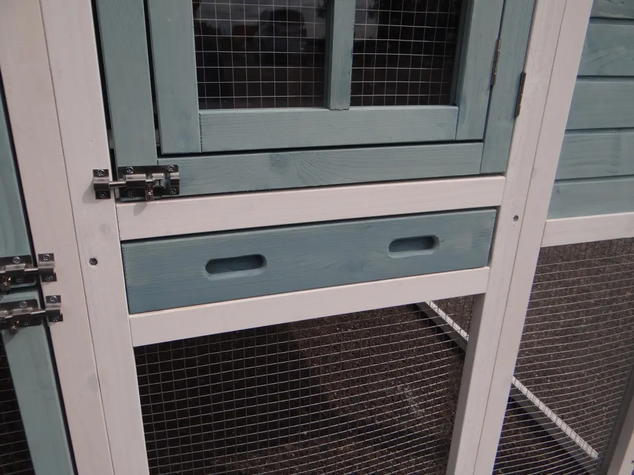 - The doors of this rabbit hutch are equiped with double locks
