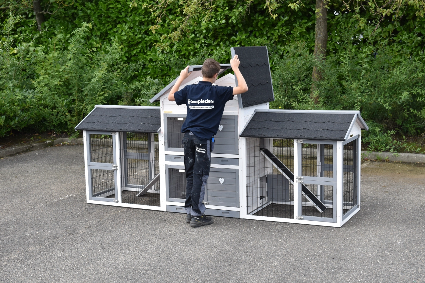 - The roof of this rabbit hutch is equipped with roofing felt