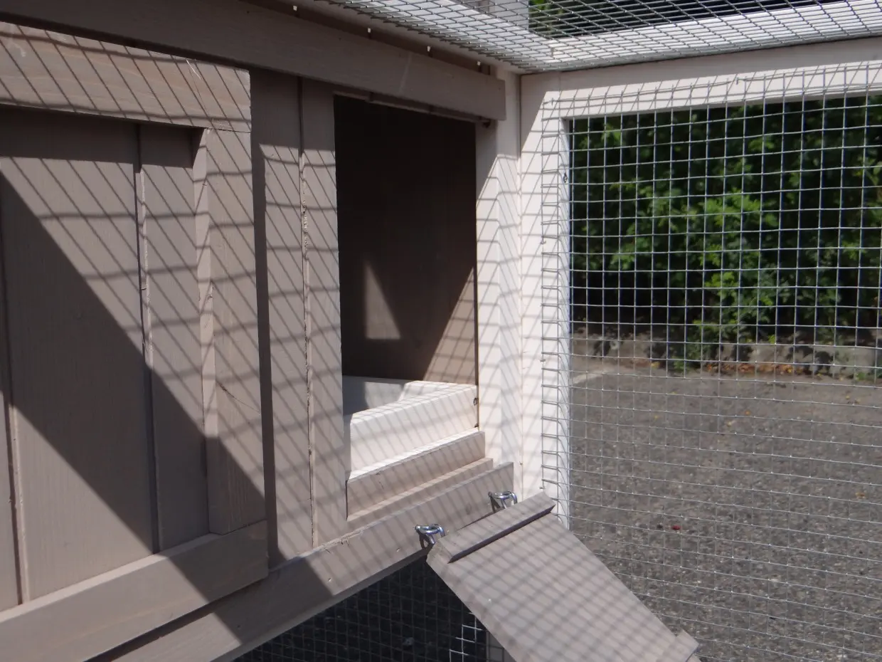 - The doors of this rabbit hutch are equiped with double locks