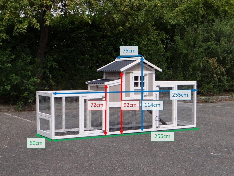 | Outer dimensions including roof (WxDxH) | 255x75x114cm |