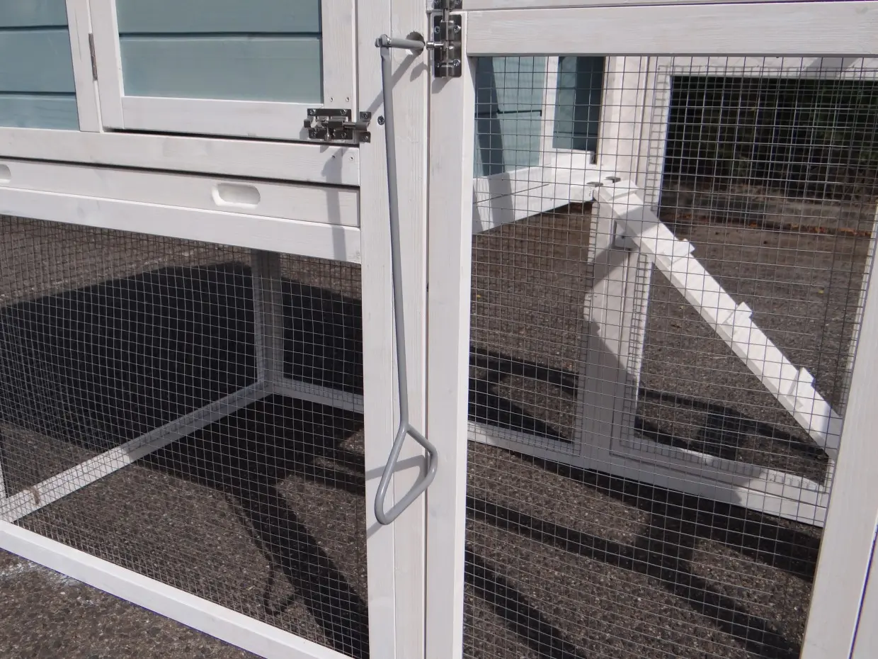 It is advisable to treat the hinges and locks periodically with silicone spray or lock spray to prevent rust and corrosion. If the pet house is not in a covered place, we advise you to anchor the house.