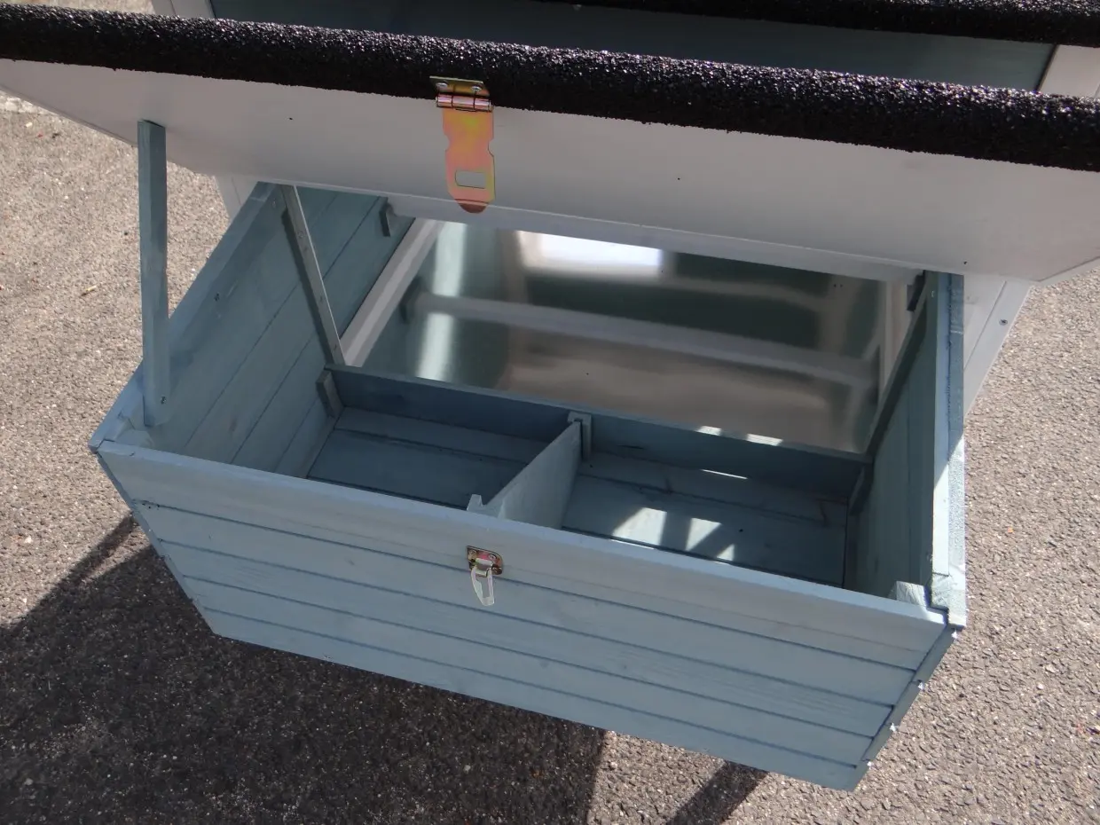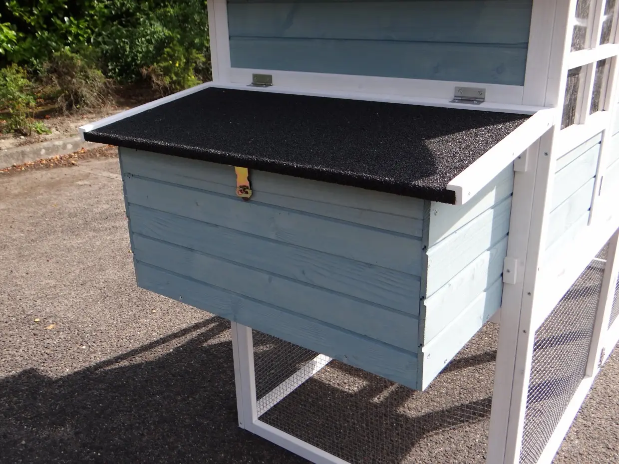 - The roof of this rabbit hutch is equipped with roofing felt