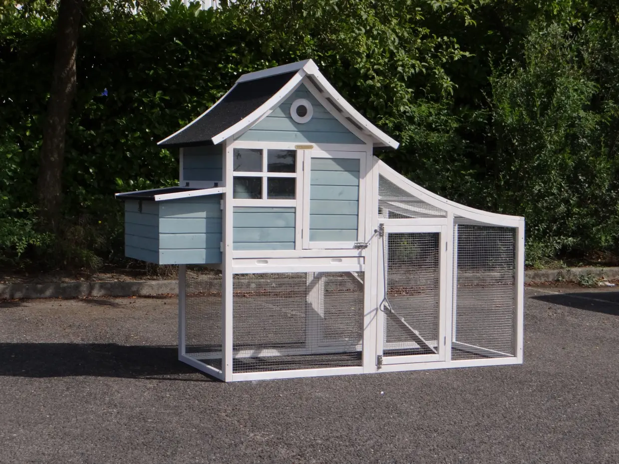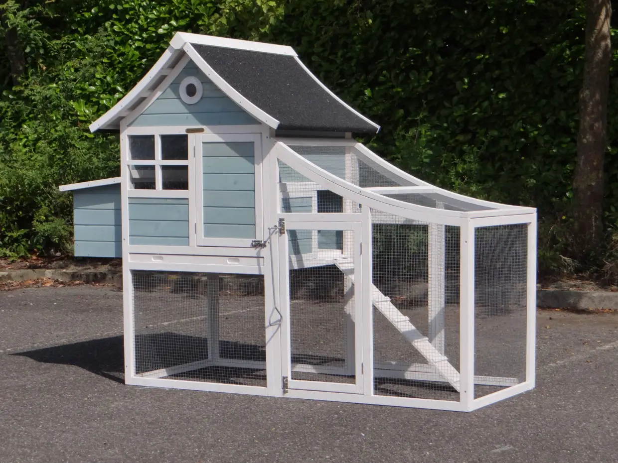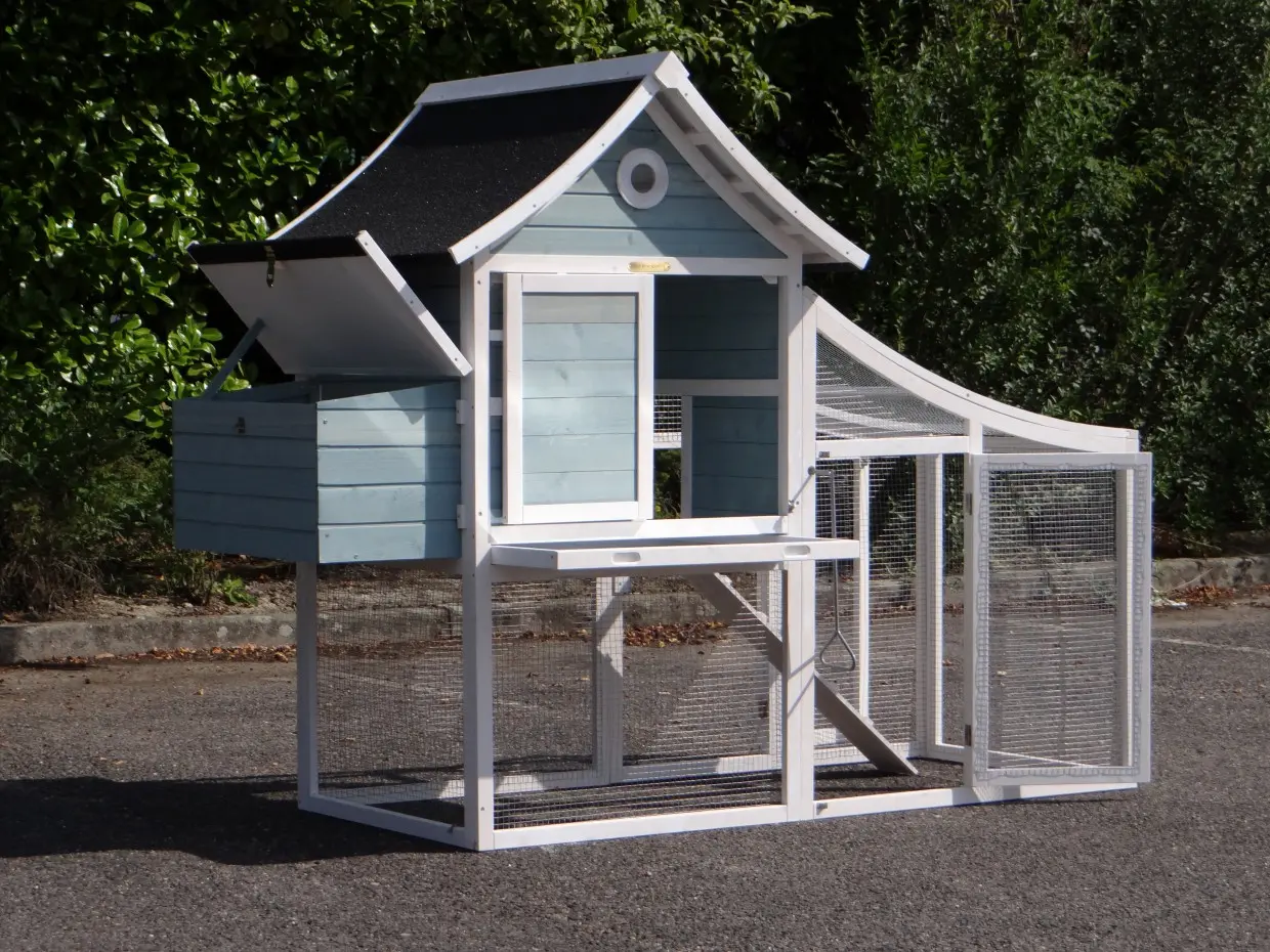 - This chicken coop is equipped with a nest box