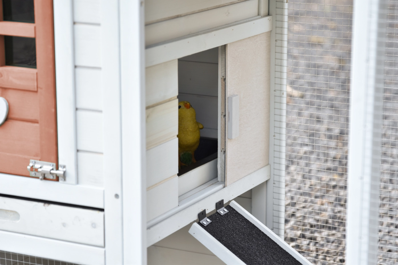 - The doors of this rabbit hutch are equiped with double locks