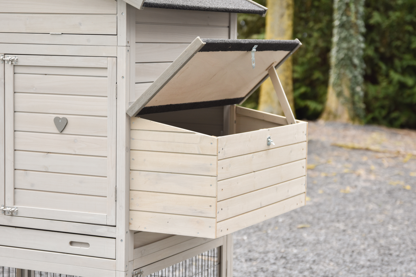 Thanks to the rubber feet, the coop is protected against rising moisture