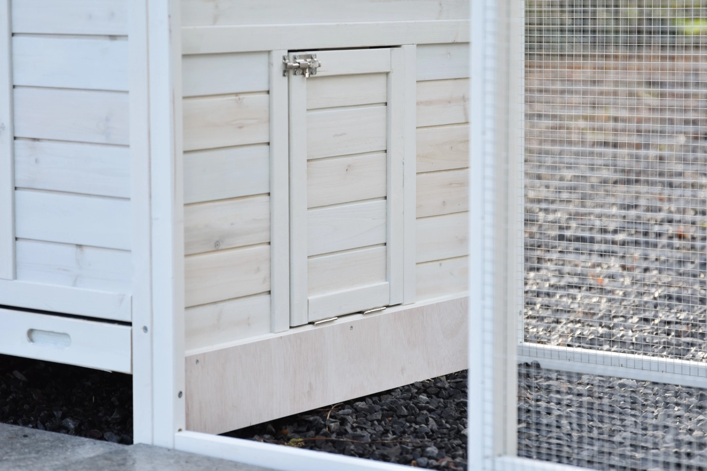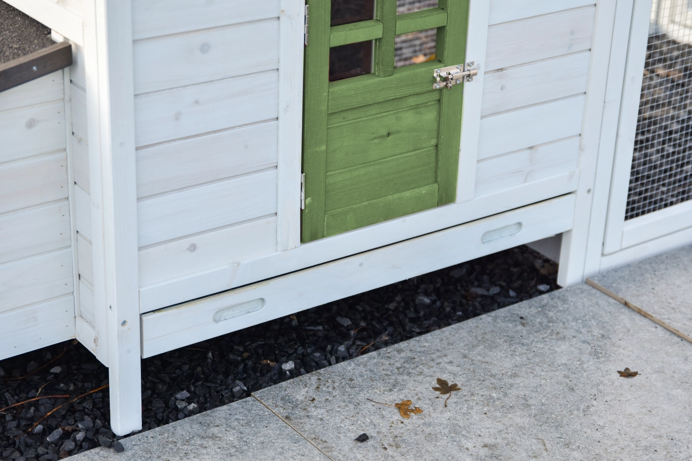 - This chicken coop is equipped with a nest box