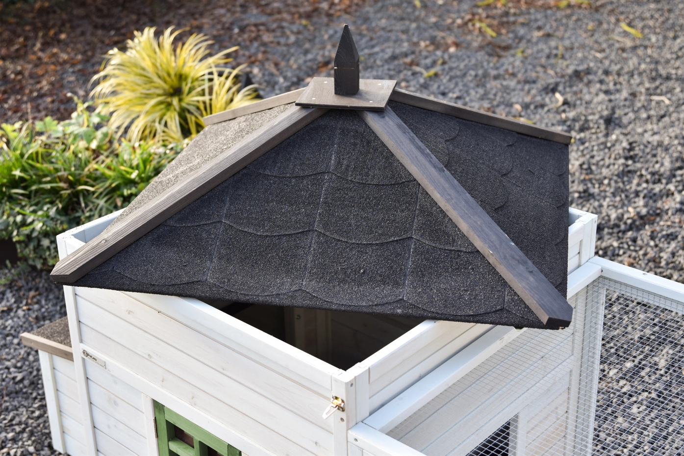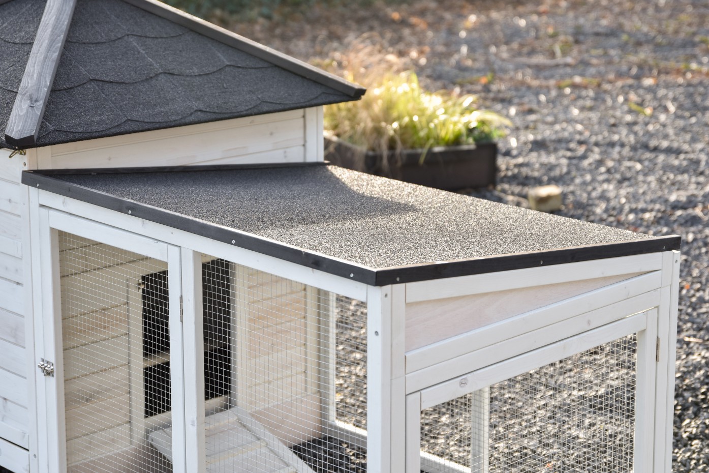 - The roof of this rabbit hutch is equipped with roofing felt