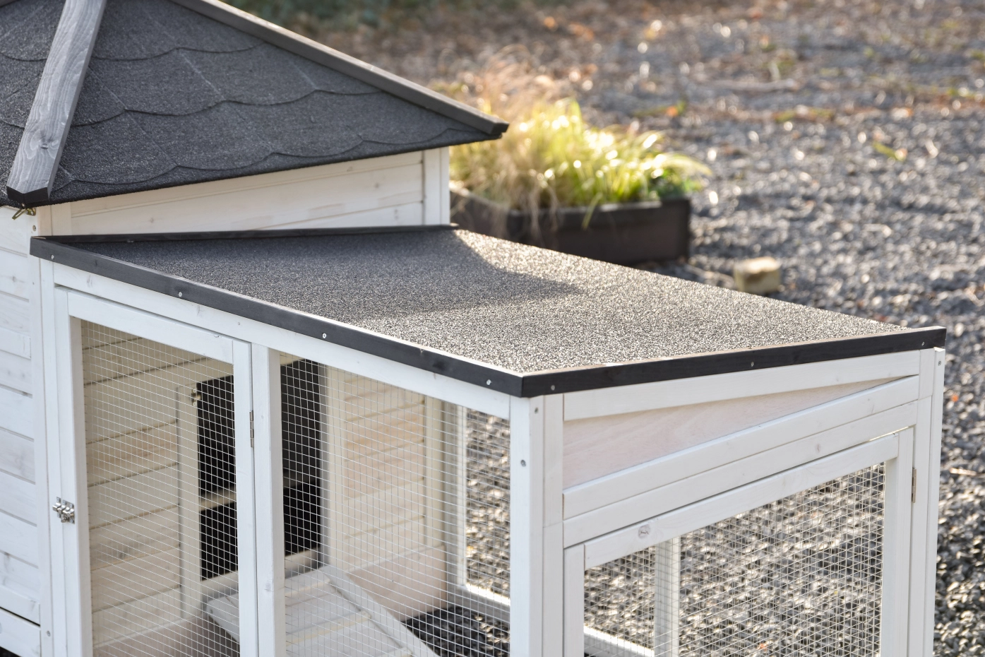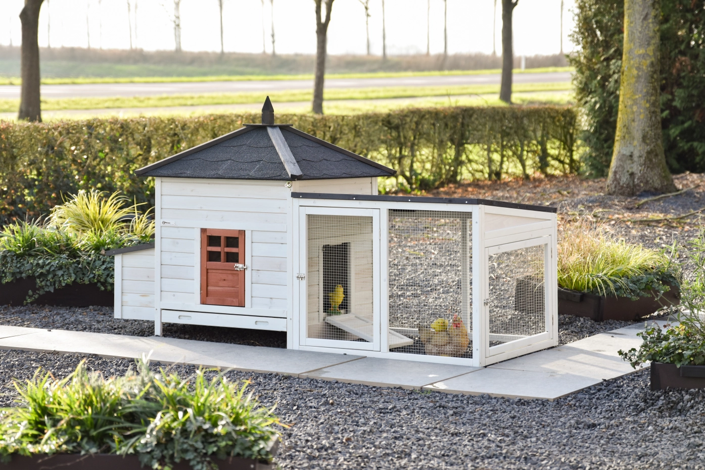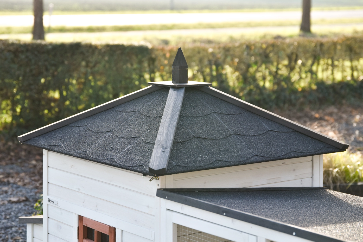 This splendid chickencoop Ambiance Large is impeccably finished down to the last detail! It features a convenient, extendable droppings tray and a removable roof. The hutch for your chickens Ambiance Large boasts beautiful and practical details, along with a useful run that can be endlessly expanded. This module can be fitted into most gardens. The night coop is suitable for a maximum of 4-6 chickens, depending on breed size.
