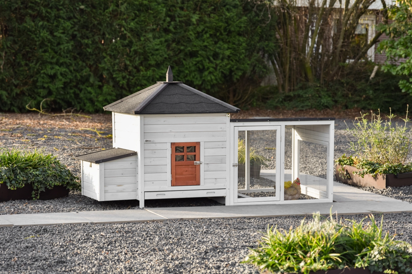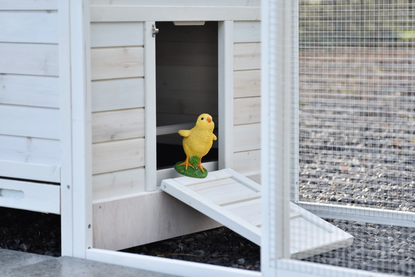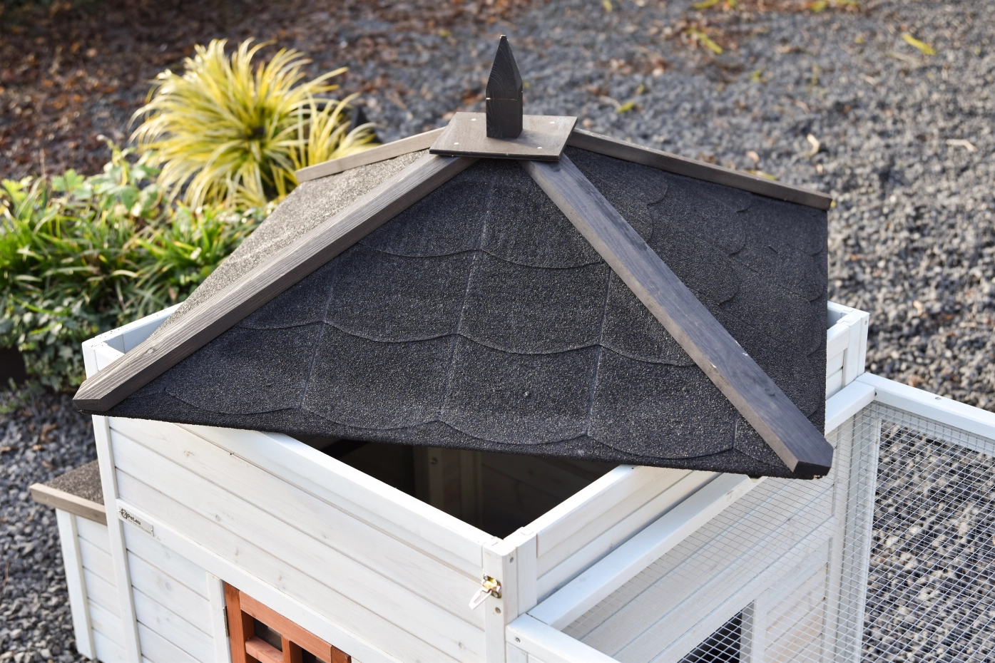 This splendid chickencoop Ambiance Large is impeccably finished down to the last detail! It features a convenient, extendable droppings tray and a removable roof. The hutch for your chickens Ambiance Large boasts beautiful and practical details, along with a useful run that can be endlessly expanded. This module can be fitted into most gardens. The night coop is suitable for a maximum of 4-6 chickens, depending on breed size.