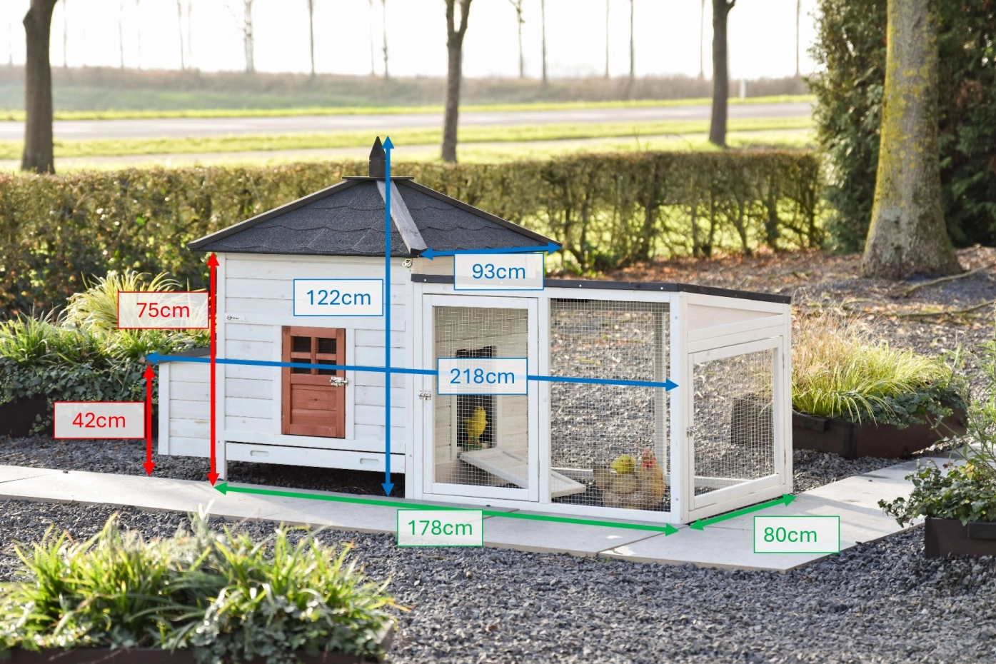 | Outer dimensions incl. roof and nest box (WxDxH) | 218x93x122cm |