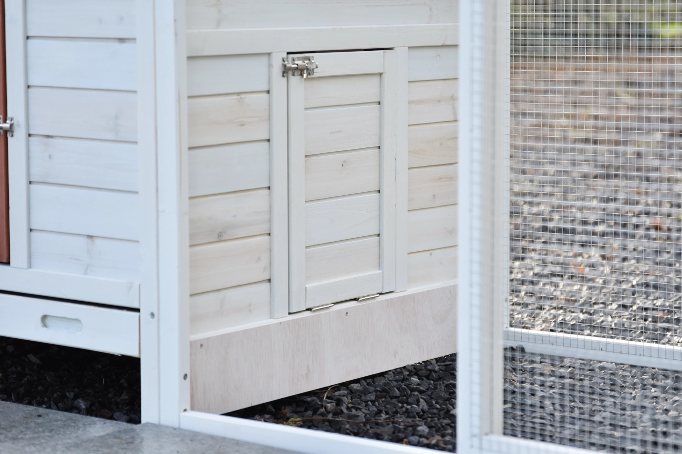 - This chicken coop is equipped with a nest box