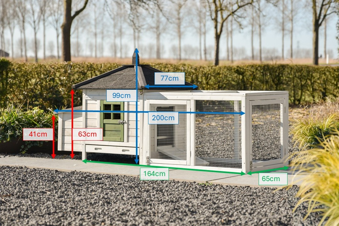 | Outer dimensions incl. roof and nest box (WxDxH) | 200x77x99cm |
