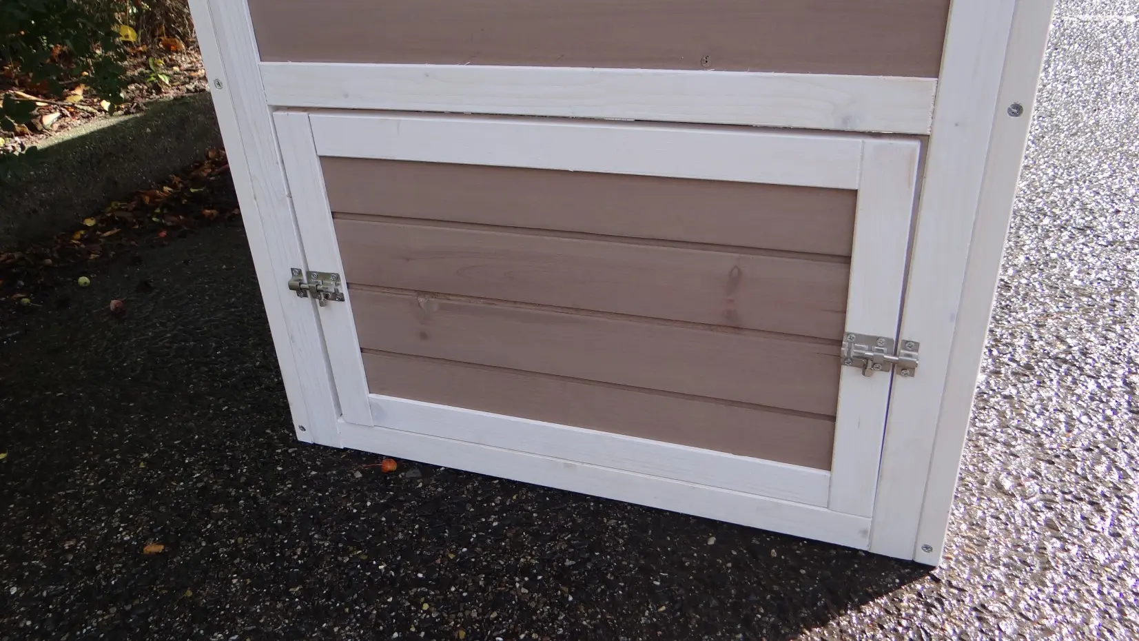 It is advisable to treat the hinges and locks periodically with silicone spray or lock spray to prevent rust and corrosion. If the pet house is not in a covered place, we advise you to anchor the house.