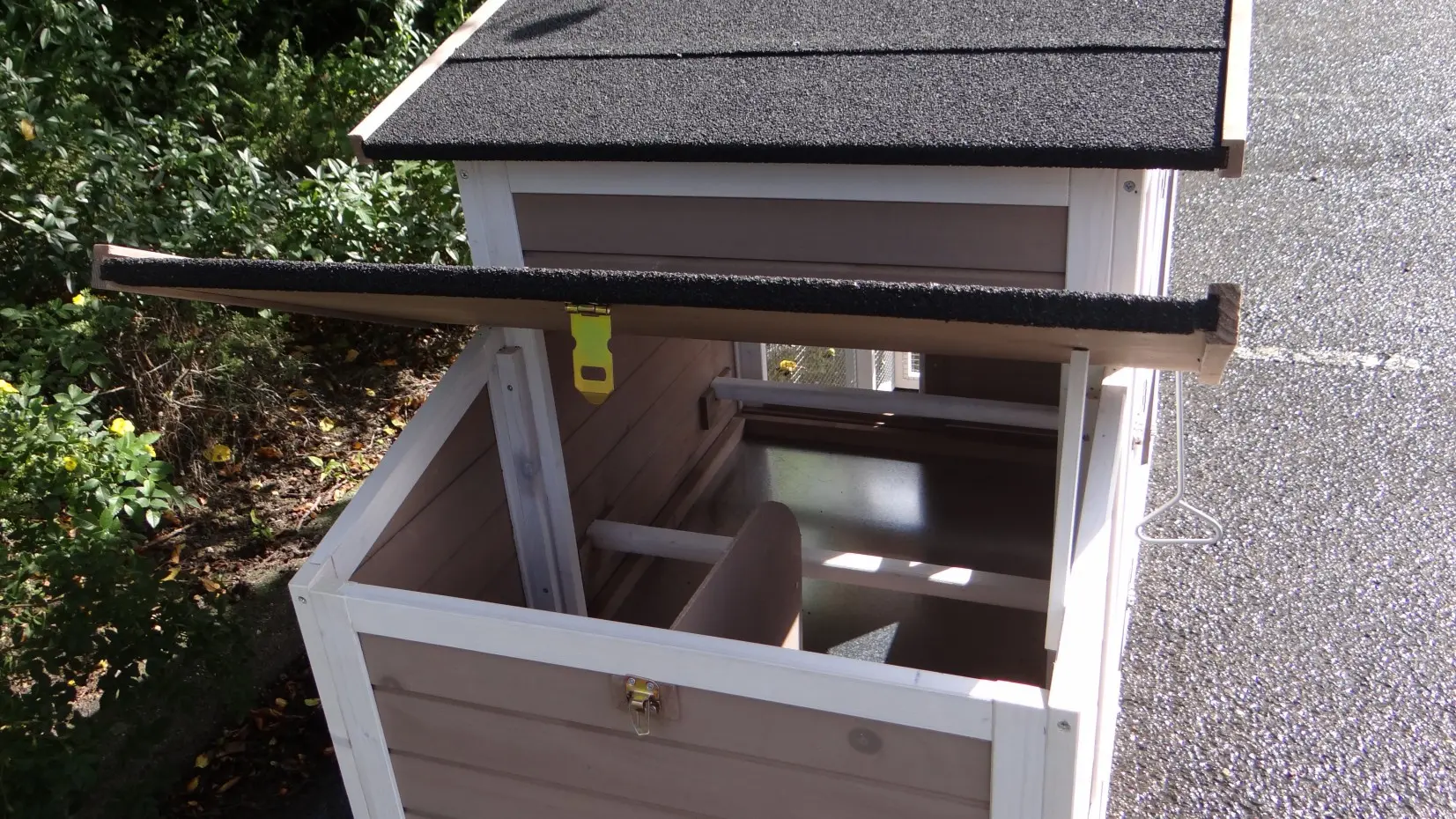 - This pet house has a handy hinged roof