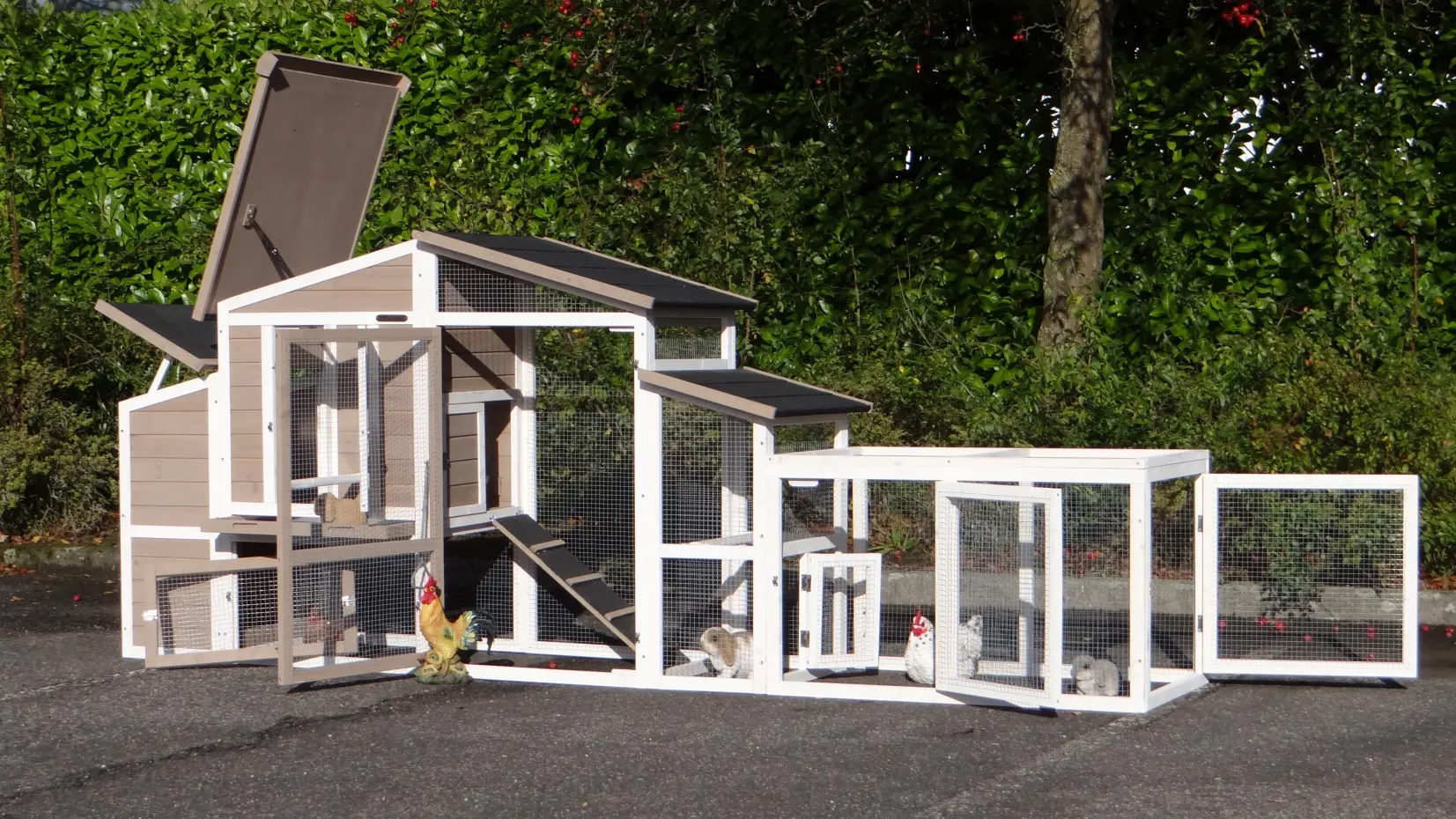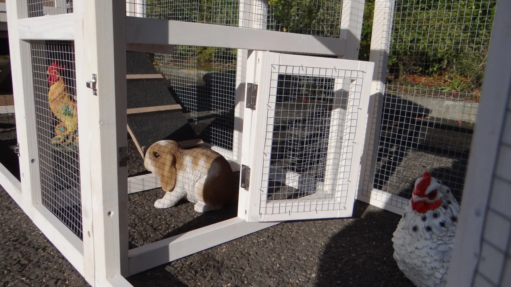 - The roof of this rabbit hutch is equipped with roofing felt
