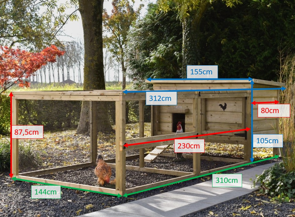 | Outer dimensions including roof (WxDxH) | 155x312x105cm |