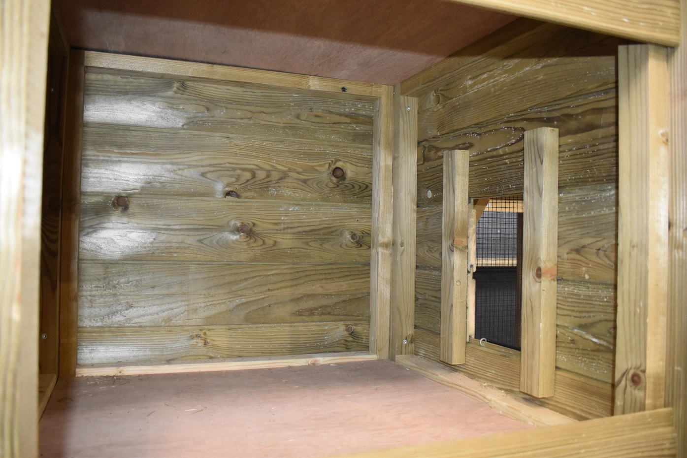 run with mesh roof · laying nest · pressure-treated spruce