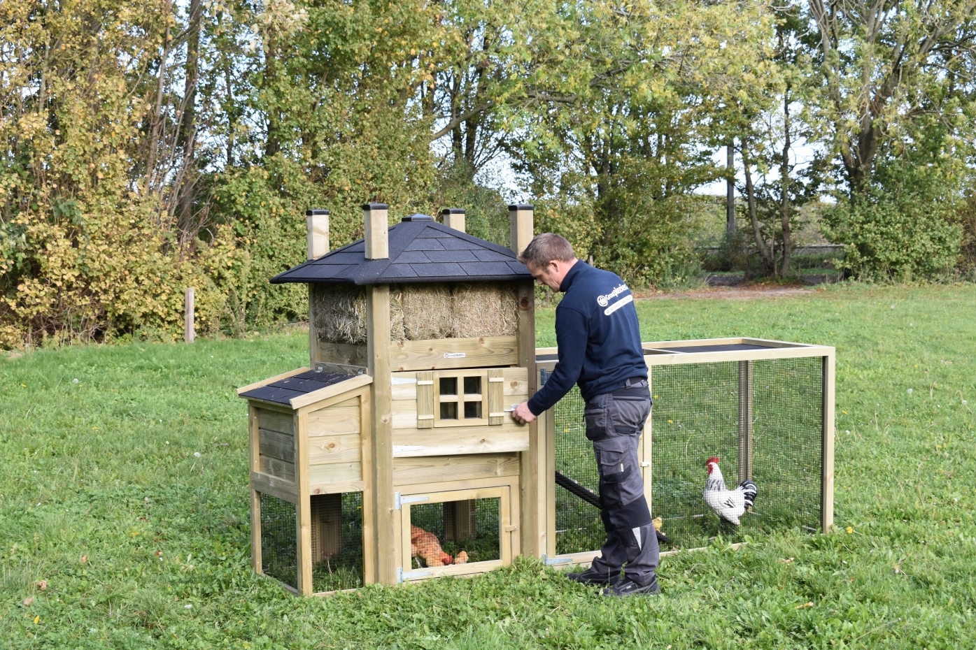 We indicate how many chickens the sleeping area is suitable for. The stated number applies per chicken size and is divided as follows: