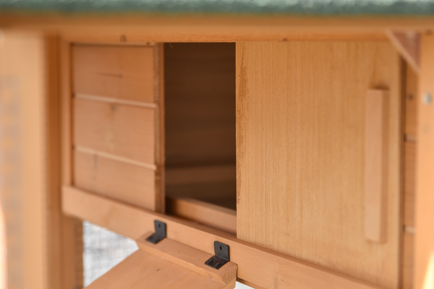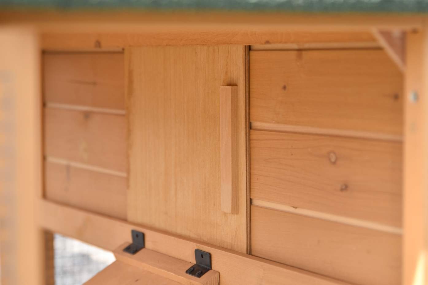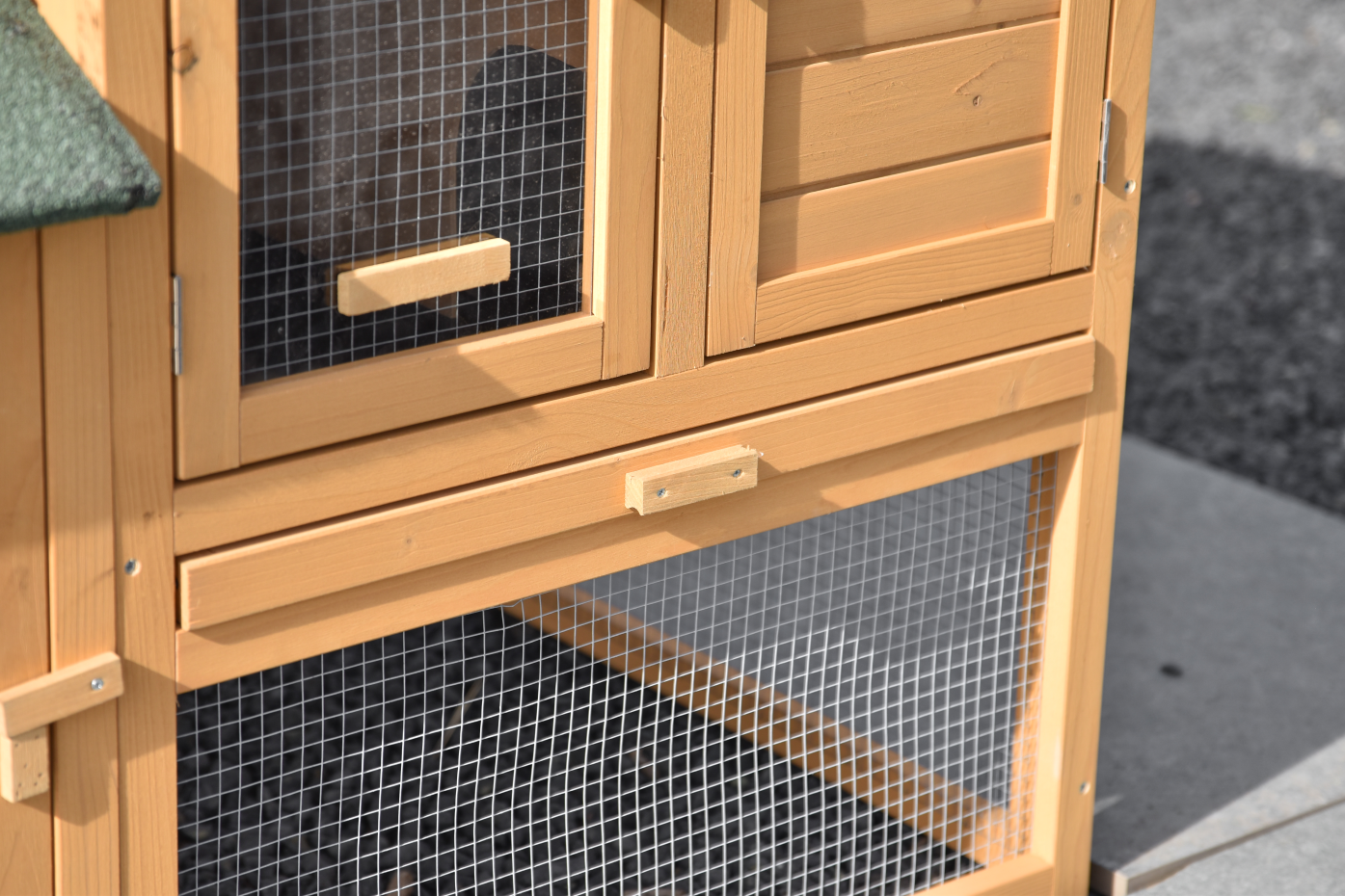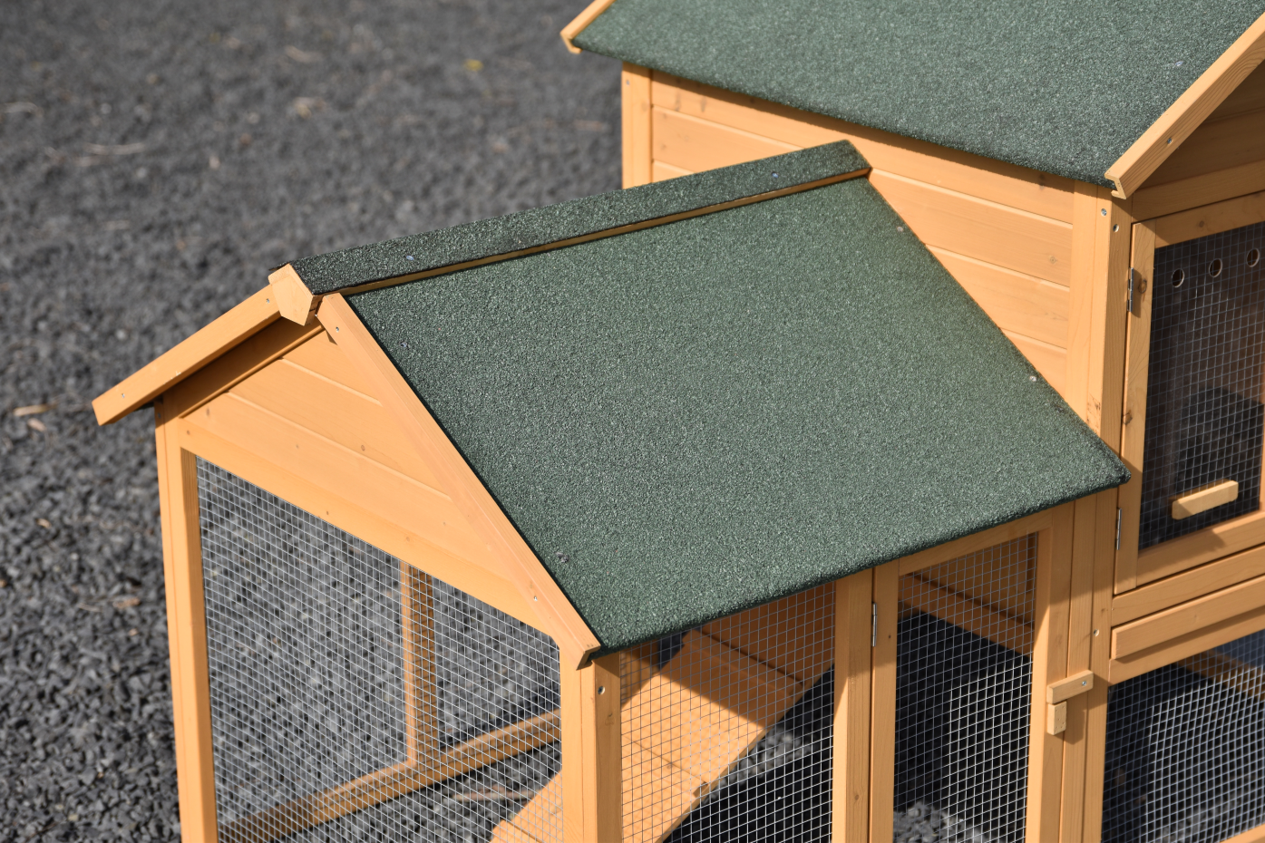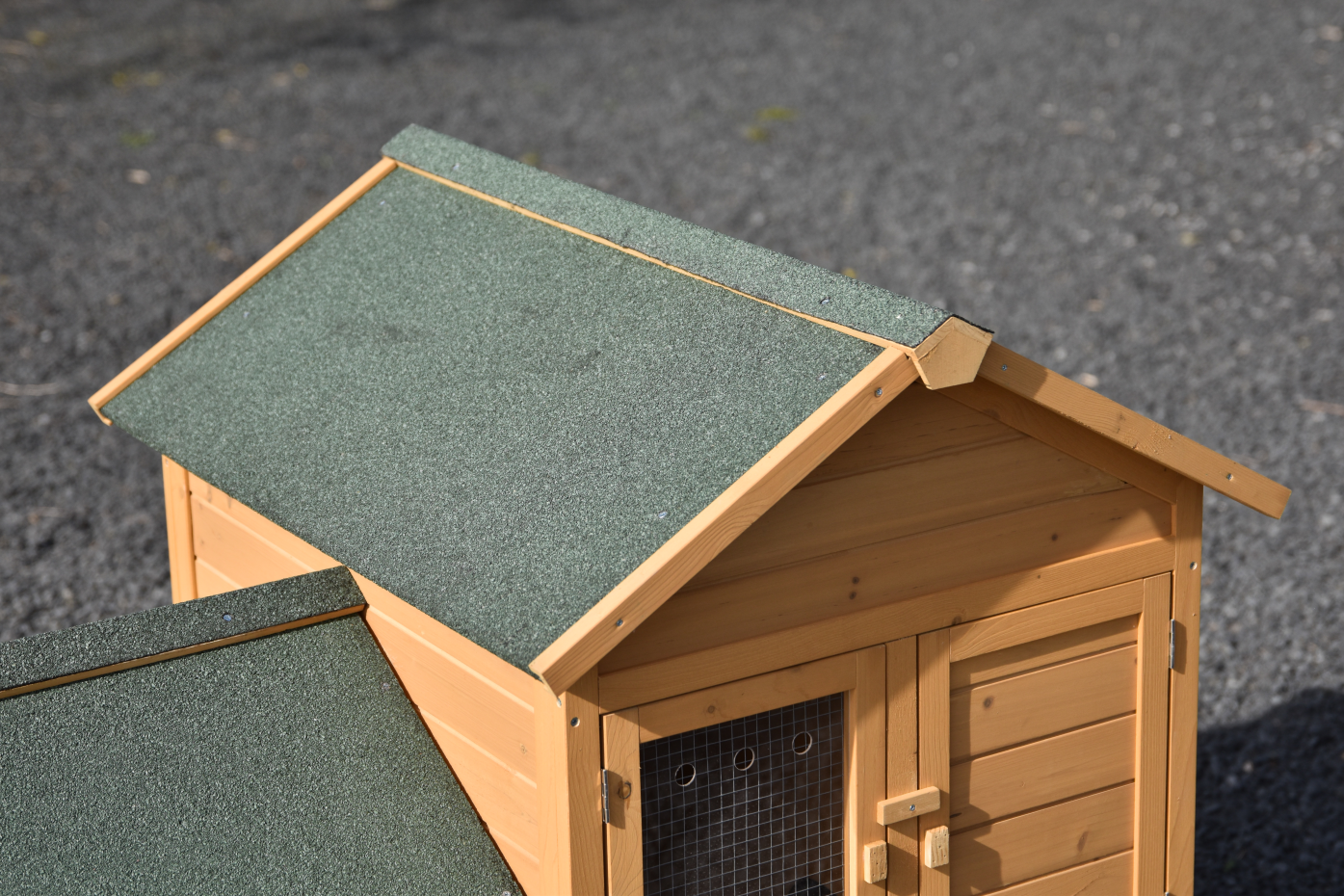 - The roof of this rabbit hutch is equipped with roofing felt