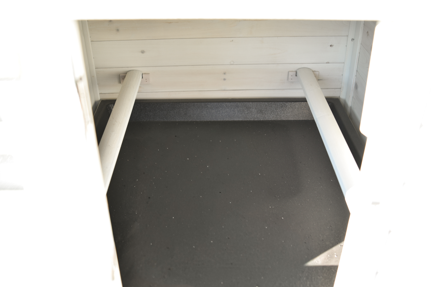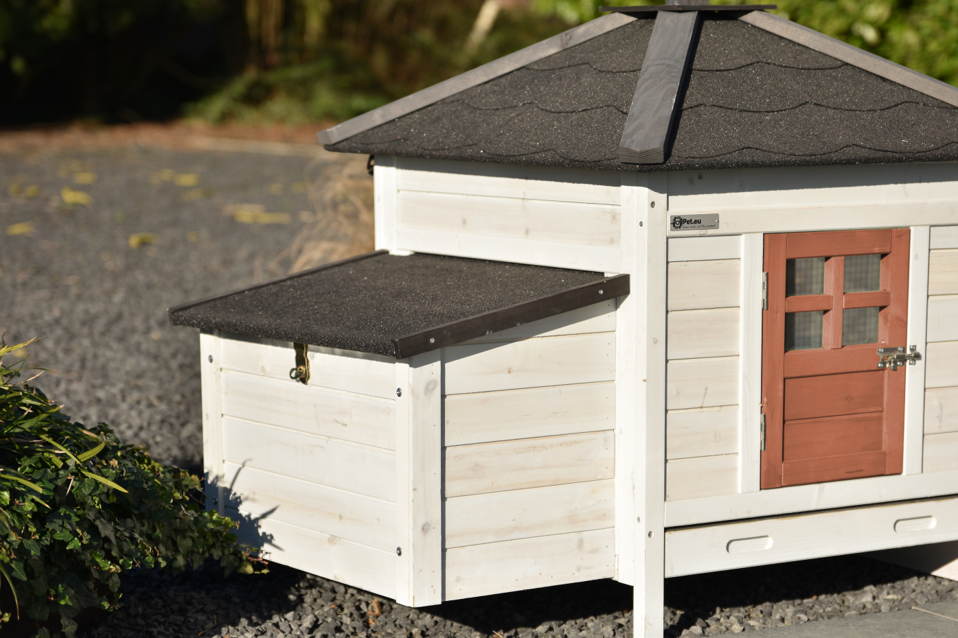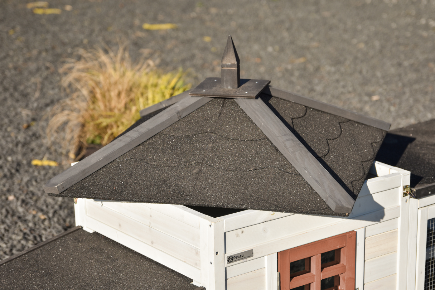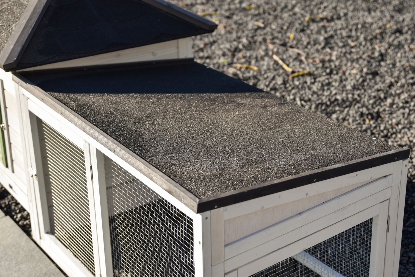 • The roof of this rabbit hutch is equipped with roofing felt