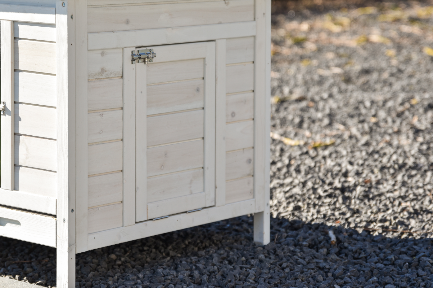It is advisable to treat the hinges and locks periodically with silicone spray or lock spray to prevent rust and corrosion. If the pet house is not in a covered place, we advise you to anchor the house.