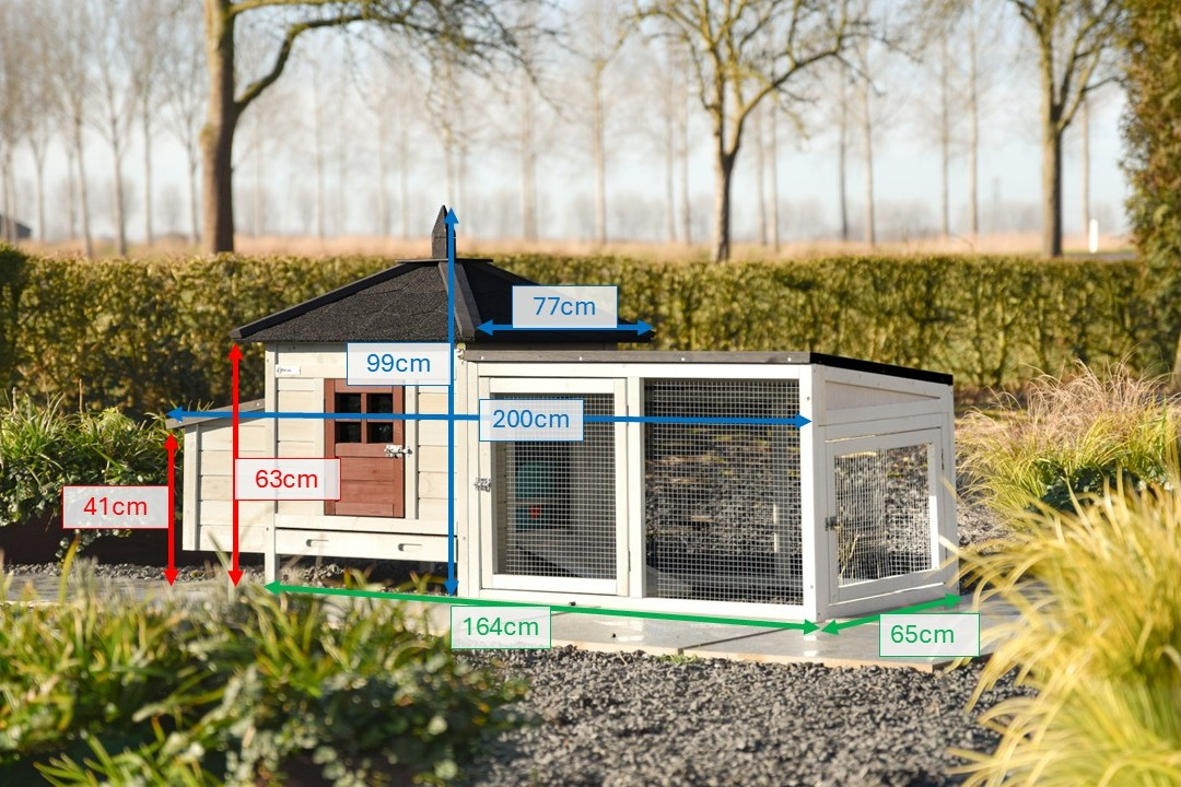 | Outer dimensions incl. roof and nest box (WxDxH) | 200x77x99cm |