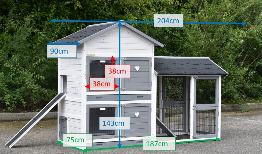 The dimensions of this lovely animal enclosure are 204x90x143 cm (maximum external measurements).