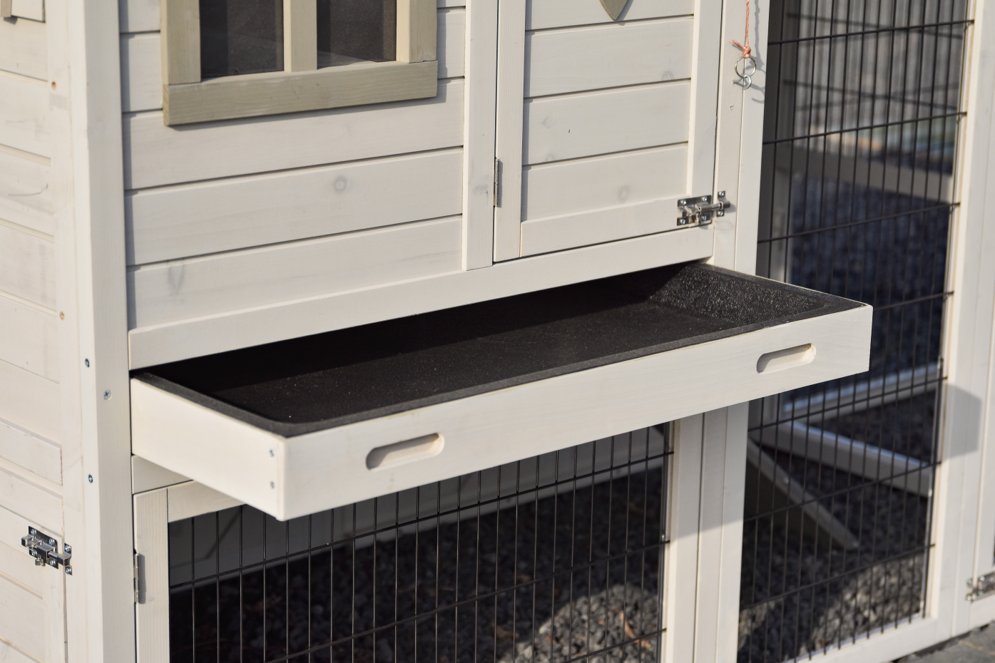- The doors of this rabbit hutch are equiped with double locks