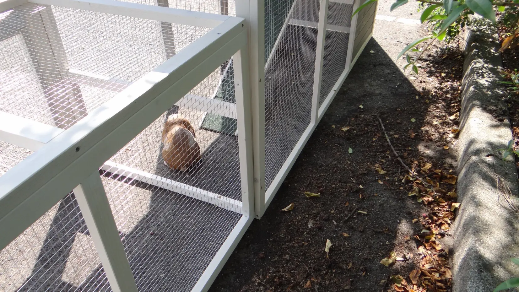 - The rabbit hutch has a plastic roof