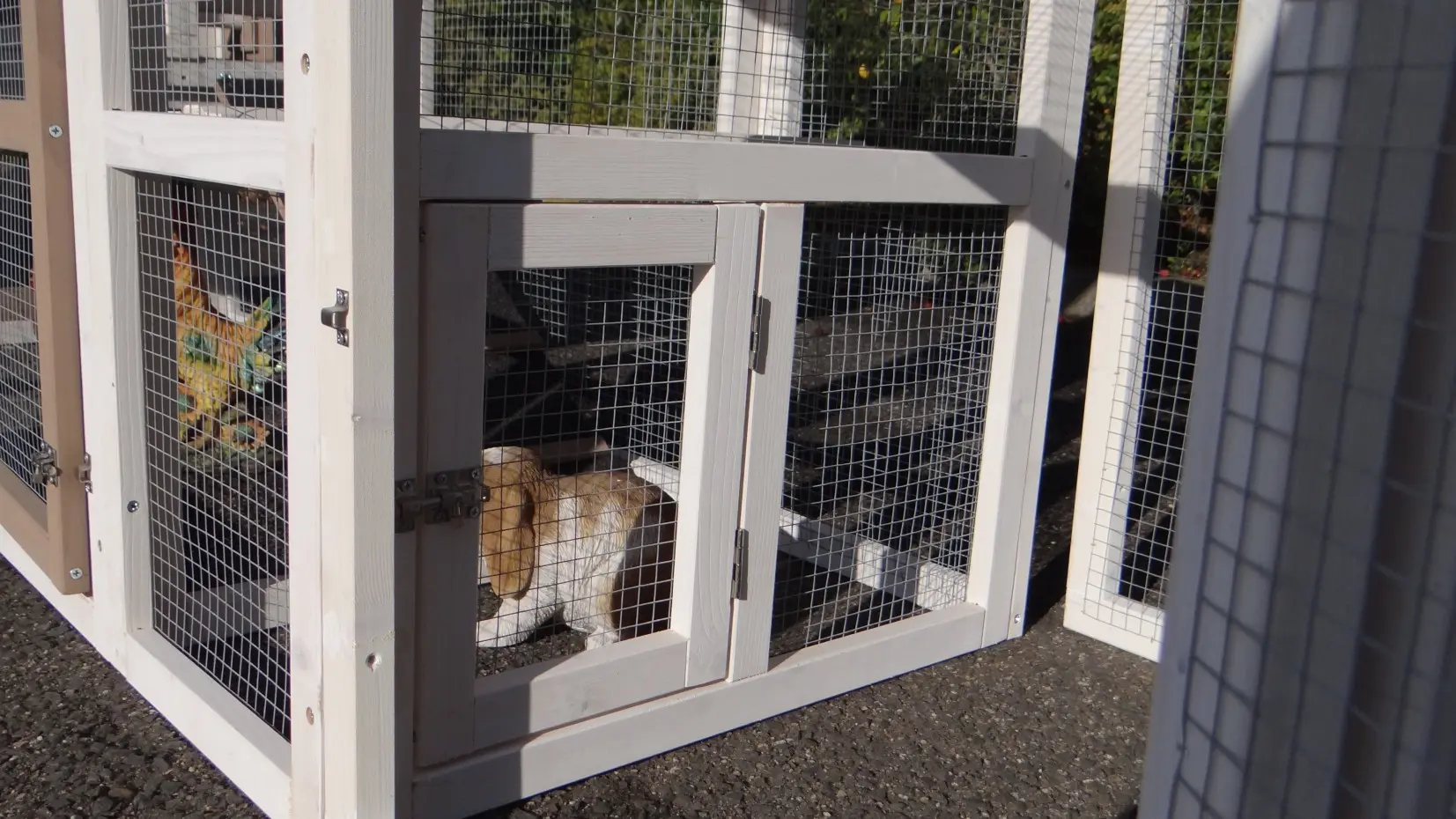 It is advisable to treat the hinges and locks periodically with silicone spray or lock spray to prevent rust and corrosion. If the pet house is not in a covered place, we advise you to anchor the house.