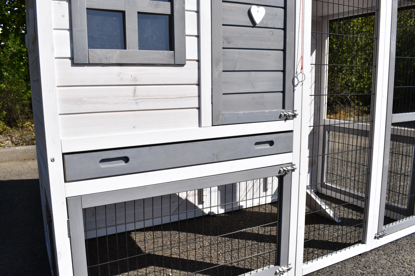 The wood, used for your pet house is a unique natural product which has been processed according to traditional methods in the country of origin, after careful selection. It is characteristic and unique in every way. This wood product has been manually processed. No single piece of wood is the same in shape, structure or color, so color shades are inevitable even within one piece of wood. Wind cracks, imperfections and the presence of large and small knots testify to their origin and years of growth. Bumps are usually manually updated with wood fill. Through use and through the influence of light, new pet houses will finally get a warmer color. Color differences in comparison with the show model or even among themselves are therefore usual. The pet house is stained in the colors as in the picture. You should do it once again to prevent mold and rot. You can easily order the stain together with the pet house.