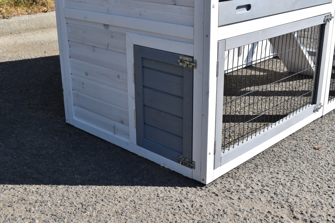 - The doors of this rabbit hutch are equiped with double locks