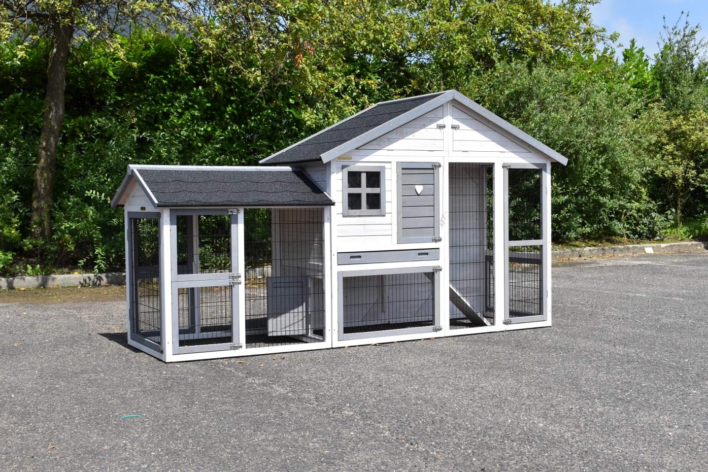 - The roof of this rabbit hutch is equipped with roofing felt