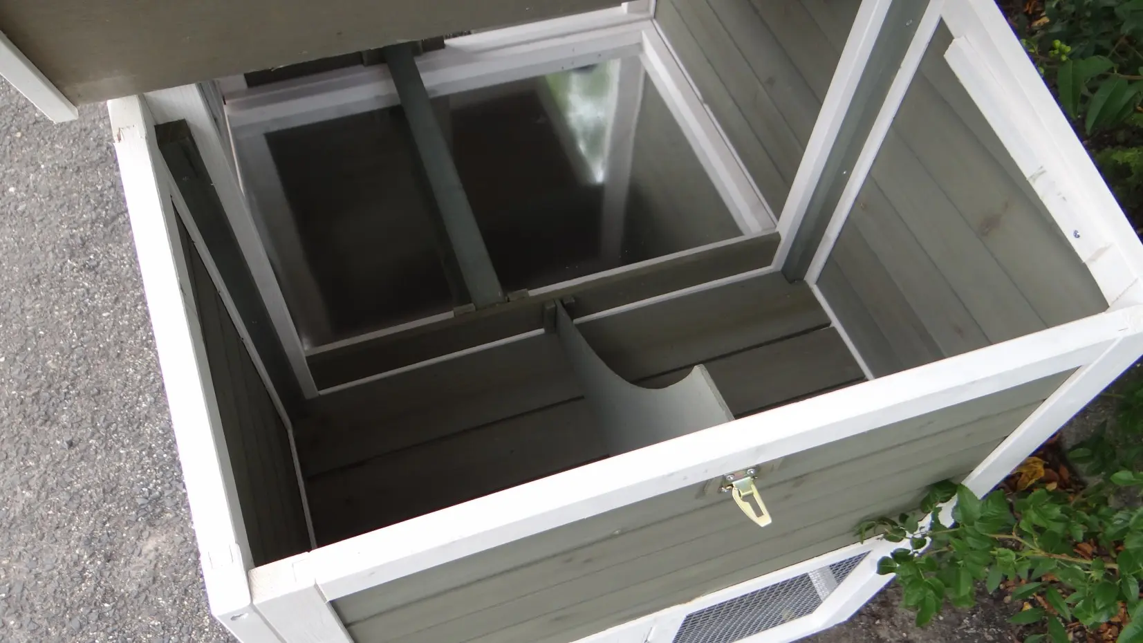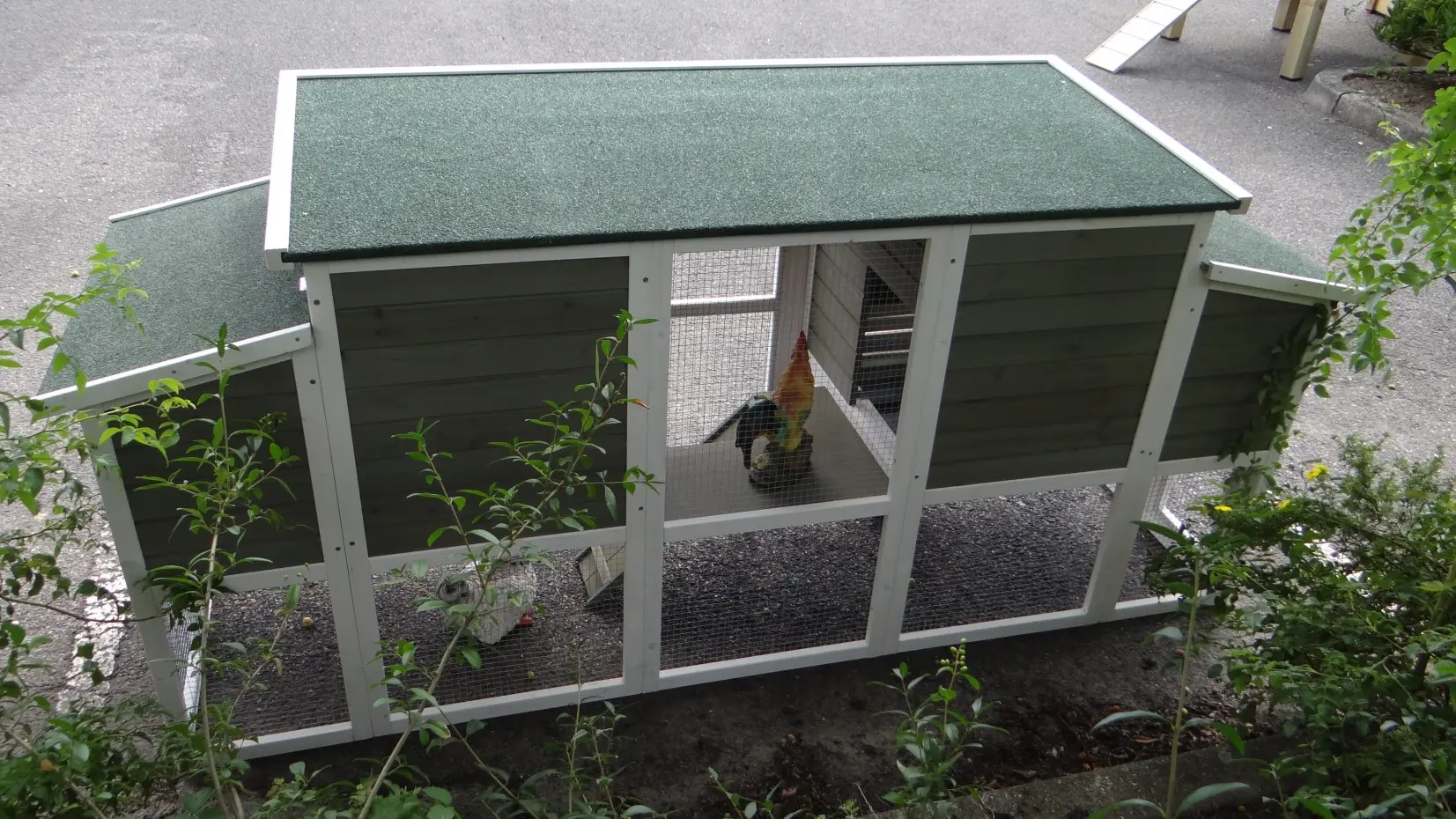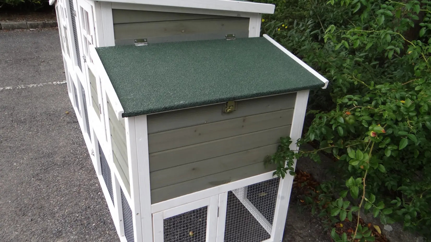 - The roof of this rabbit hutch is equipped with roofing felt