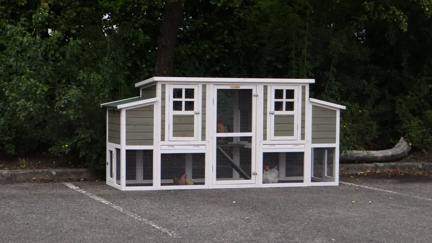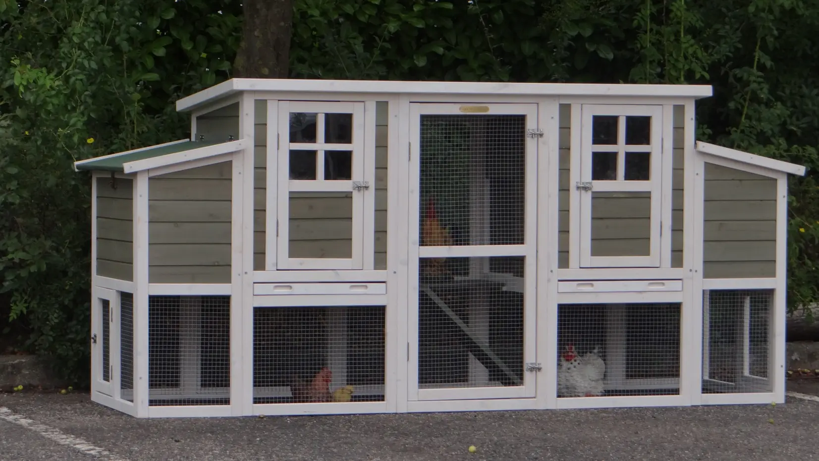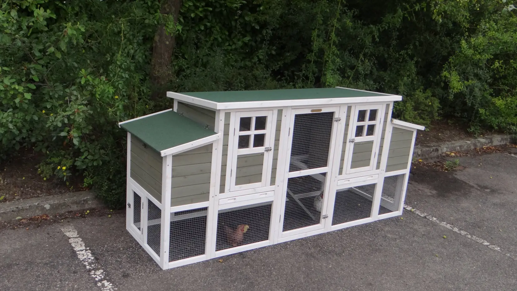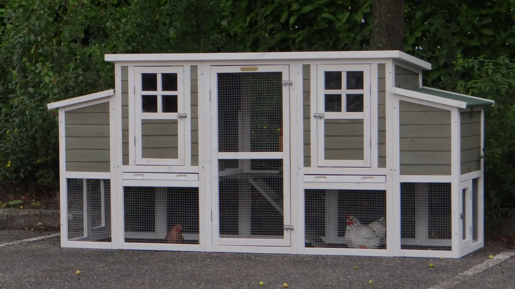 The coop is equipped with pull-out trays, making cleaning quick and effortless.