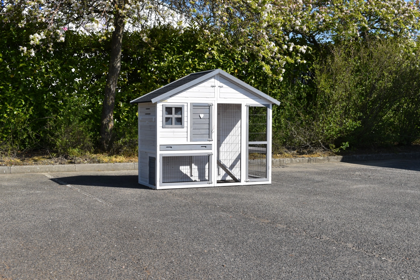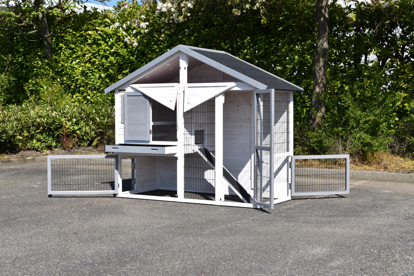 The Holiday Medium chicken coop is a beautiful coop, designed with attention to every detail. It features large doors in both the coop and the run, as well as a handy pull-out tray for easy cleaning.