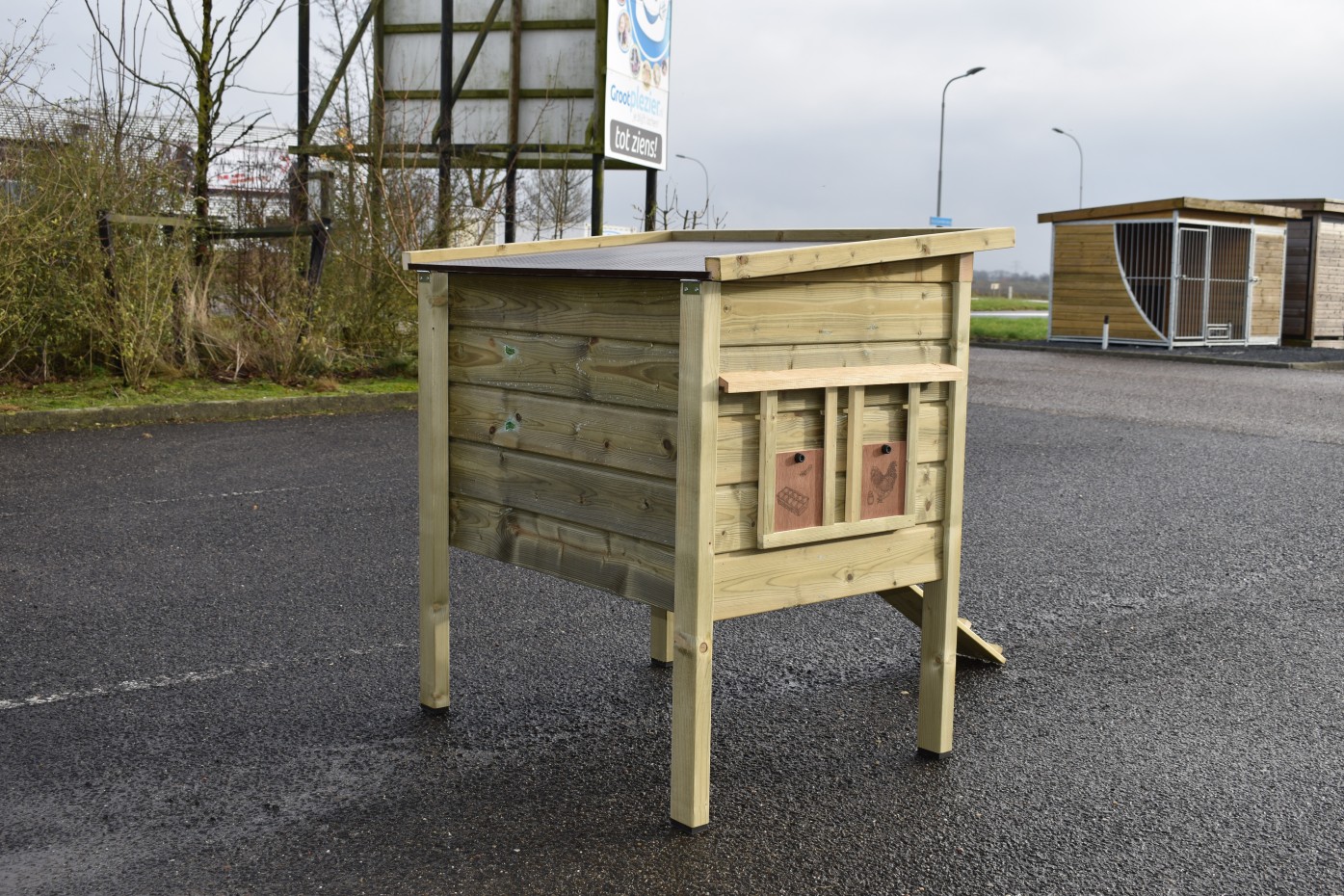 - Doghouse of high pressure treated pinewood in combination with betonplex