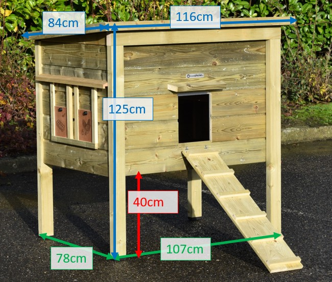 Outer dimensions incl. roof and nest box (WxDxH) 116x84x125cm