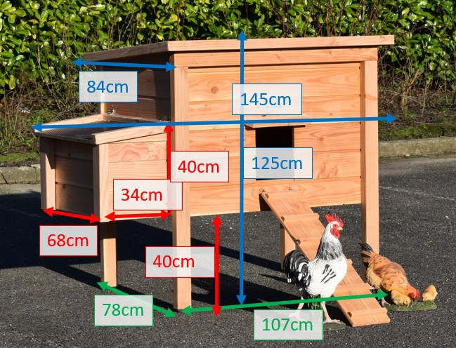 | Outer dimensions incl. roof and nest box (WxDxH) | 144x84x125cm |