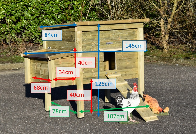 | Outer dimensions incl. roof and nest box (WxDxH) | 144x84x125cm |