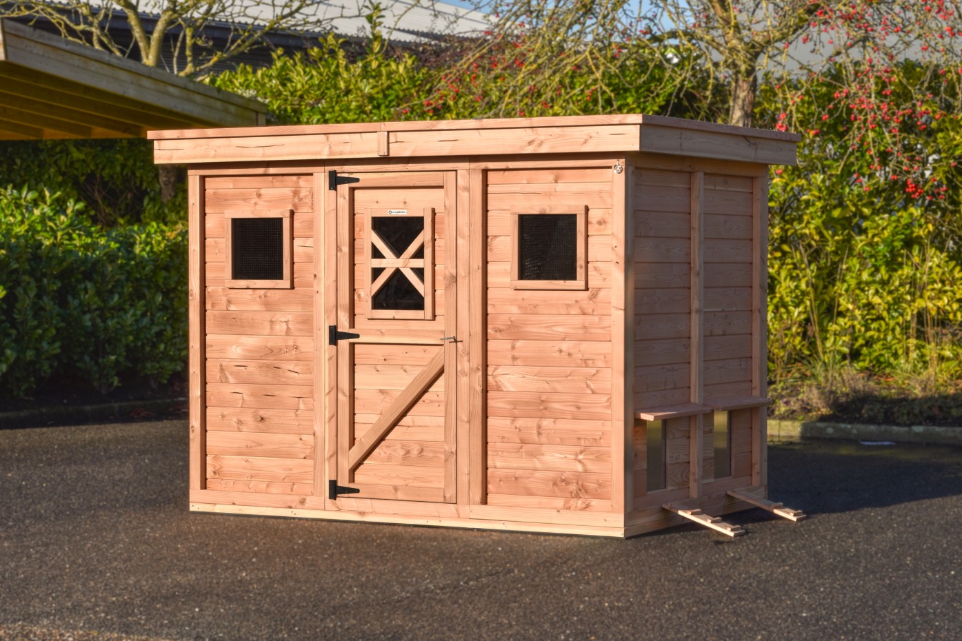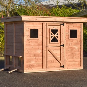 The roof is made of roof panels with felt on the underside and is finished with a neat wooden roof edge. Would you like a slightly different version of the chicken coop Flex? With our handy 3D tool, you can easily customize the coop to your own wishes and create the perfect configuration for your situation.
