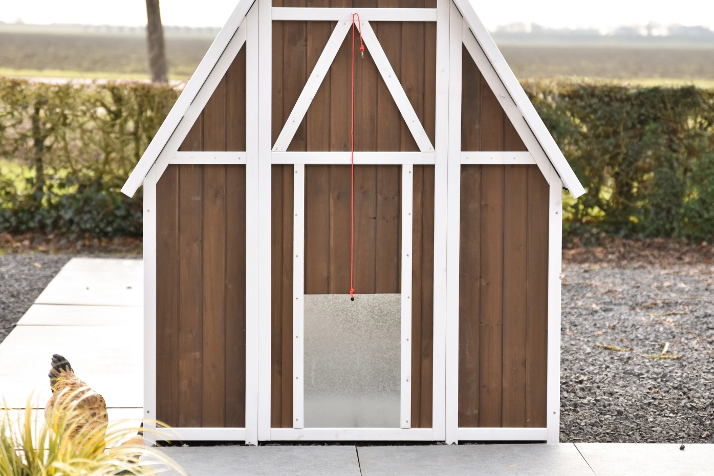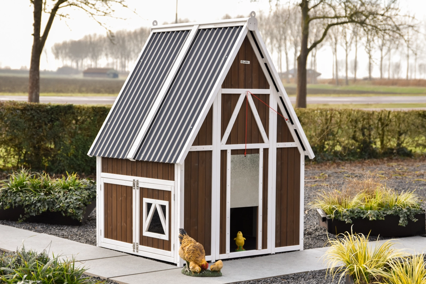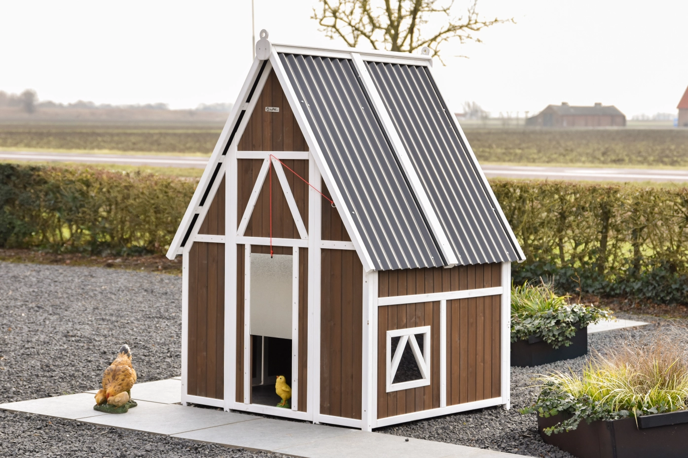 Chicken coop Pip is a large and comfortable coop with a classic gable roof, suitable for keeping 10 to 20 chickens. Because the coop is open all the way up to the ridge, the chickens can perch nice and high and the space is used to its full potential.