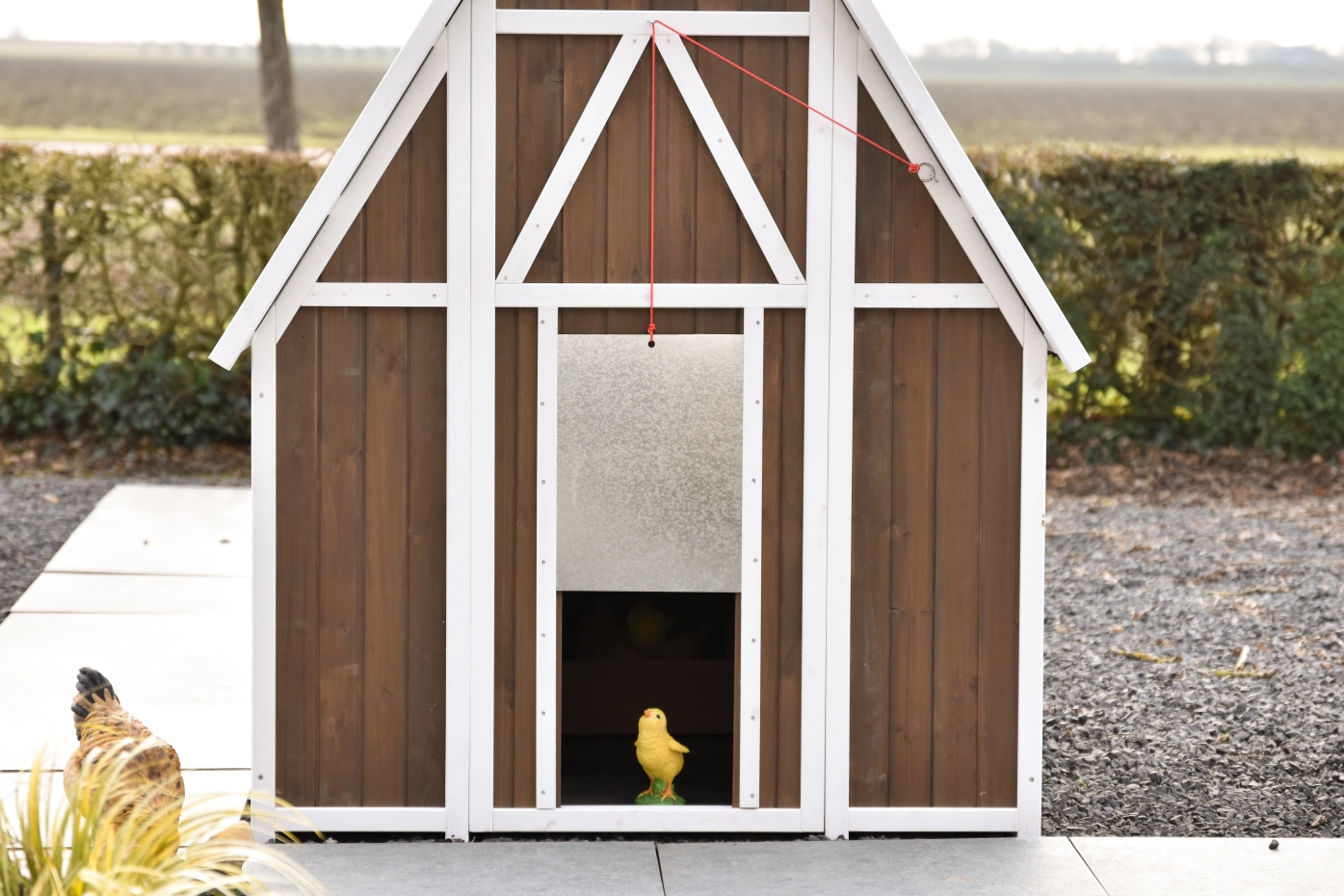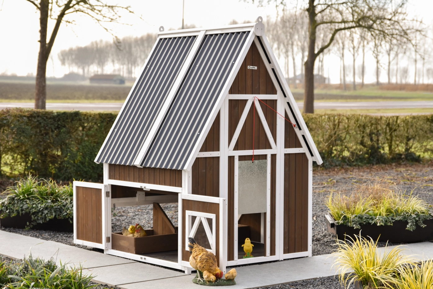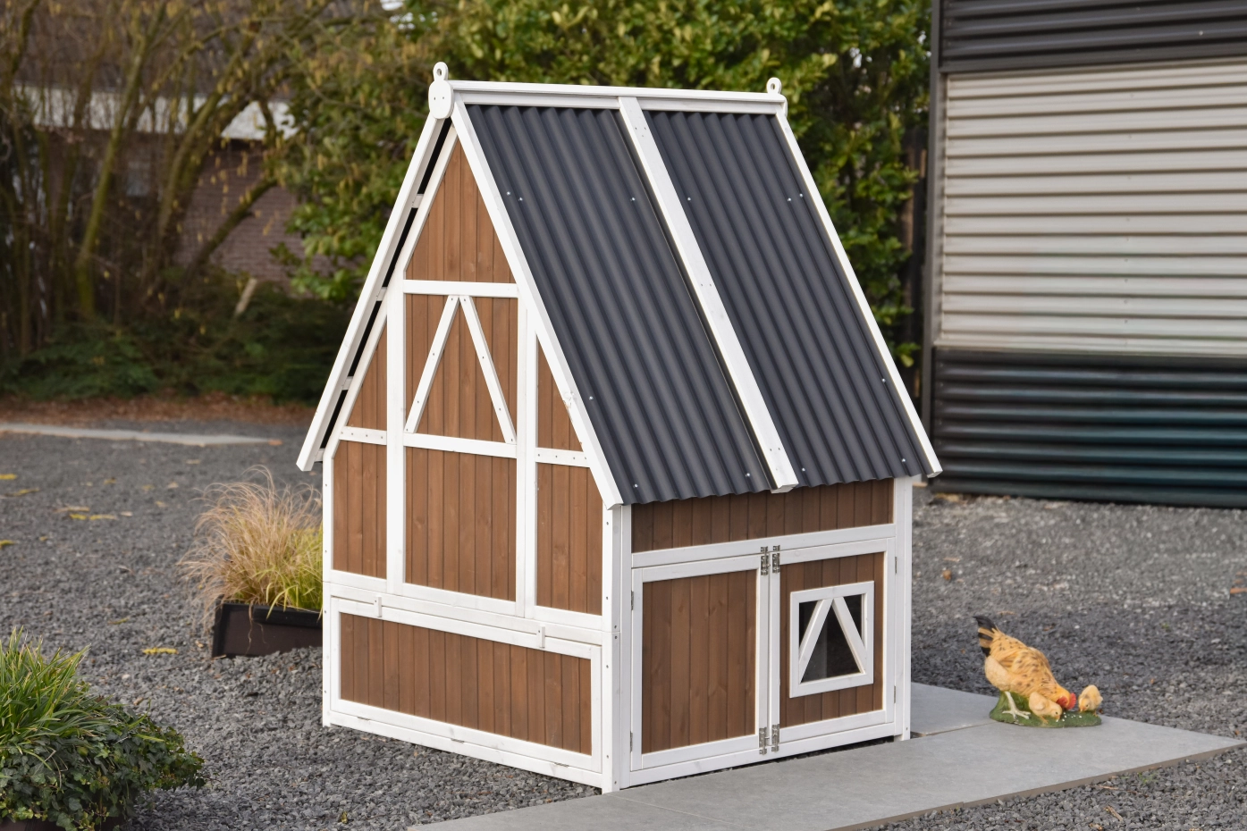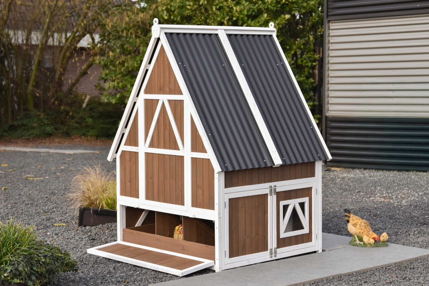 Chicken coop Pip is a large and comfortable coop with a classic gable roof, suitable for keeping 10 to 20 chickens. Because the coop is open all the way up to the ridge, the chickens can perch nice and high and the space is used to its full potential.