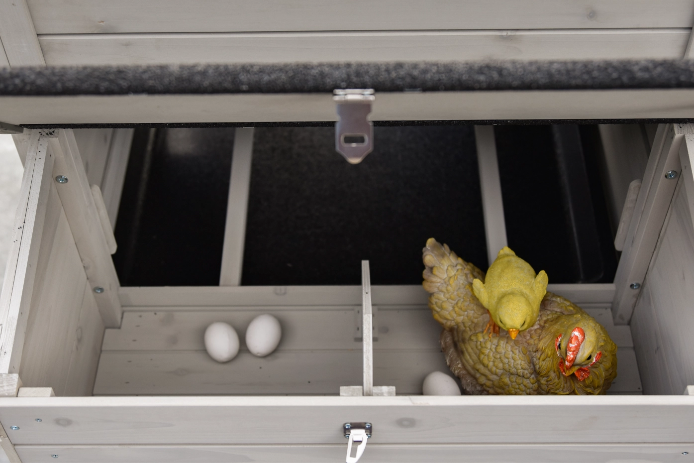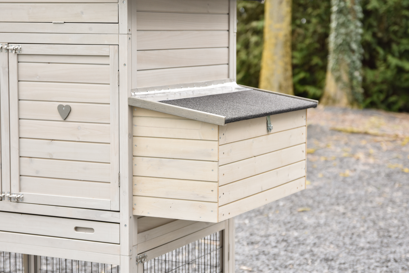 Thanks to the rubber feet, the coop is protected against rising moisture