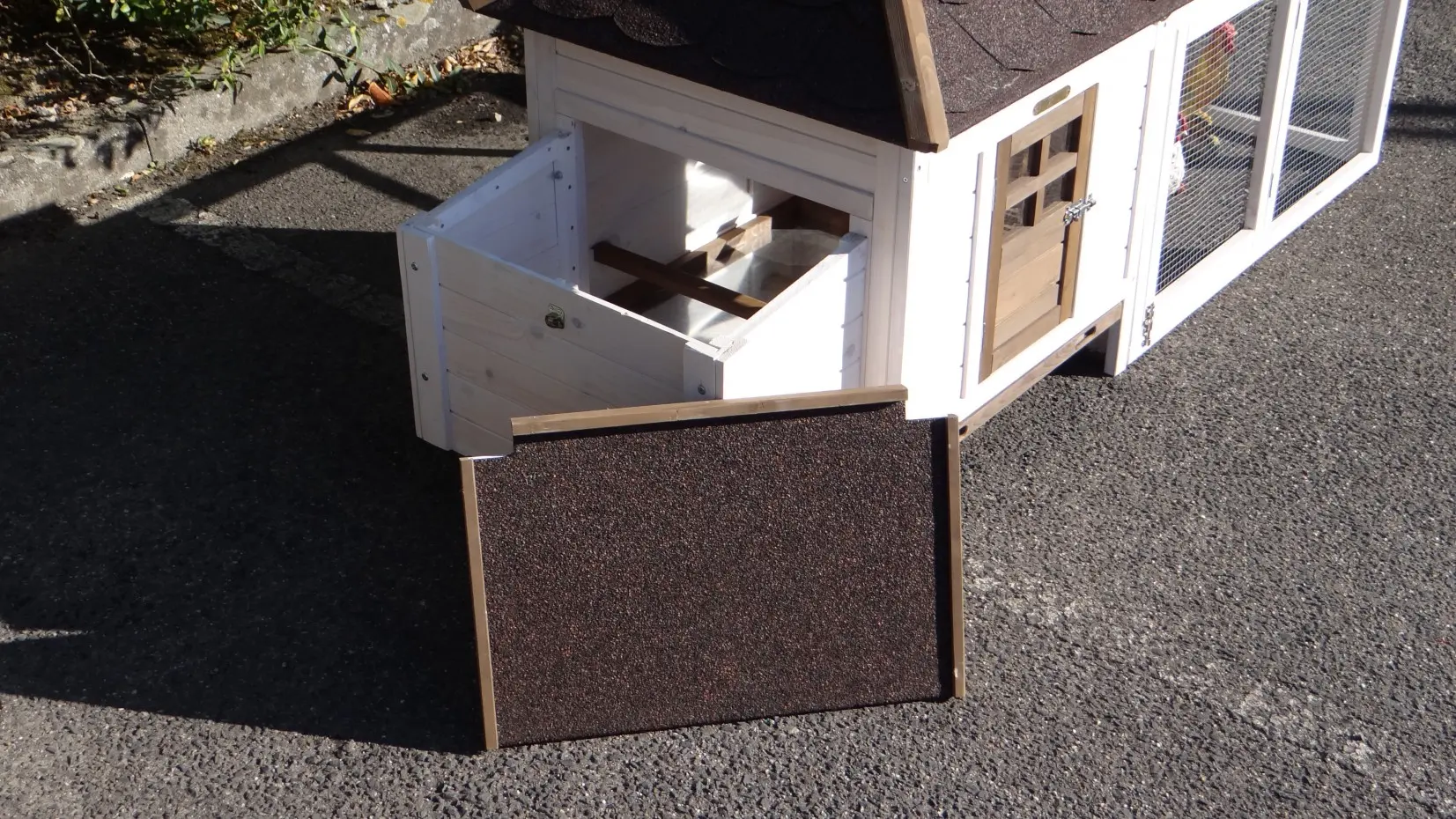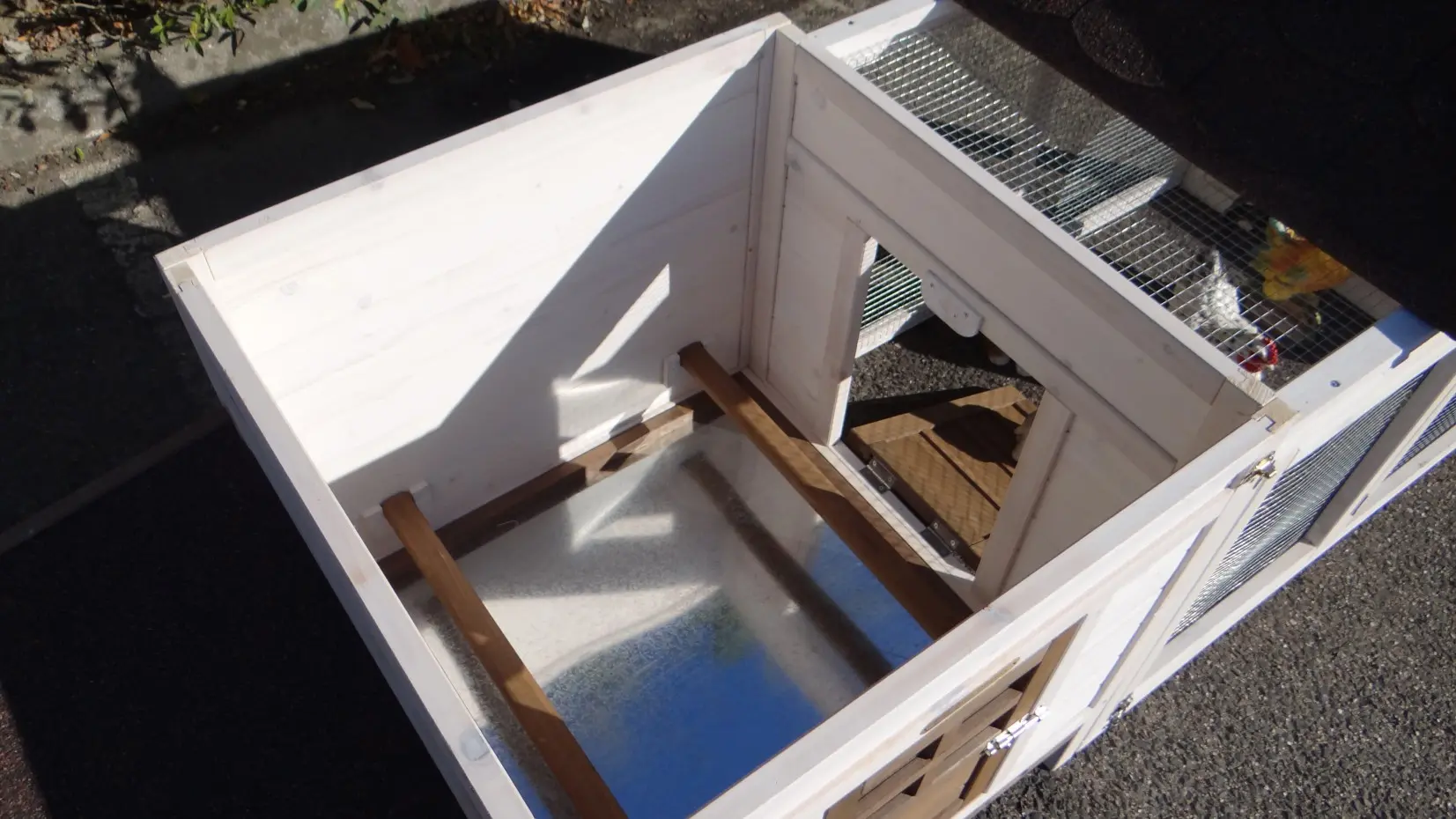 - The roof of this rabbit hutch is equipped with roofing felt