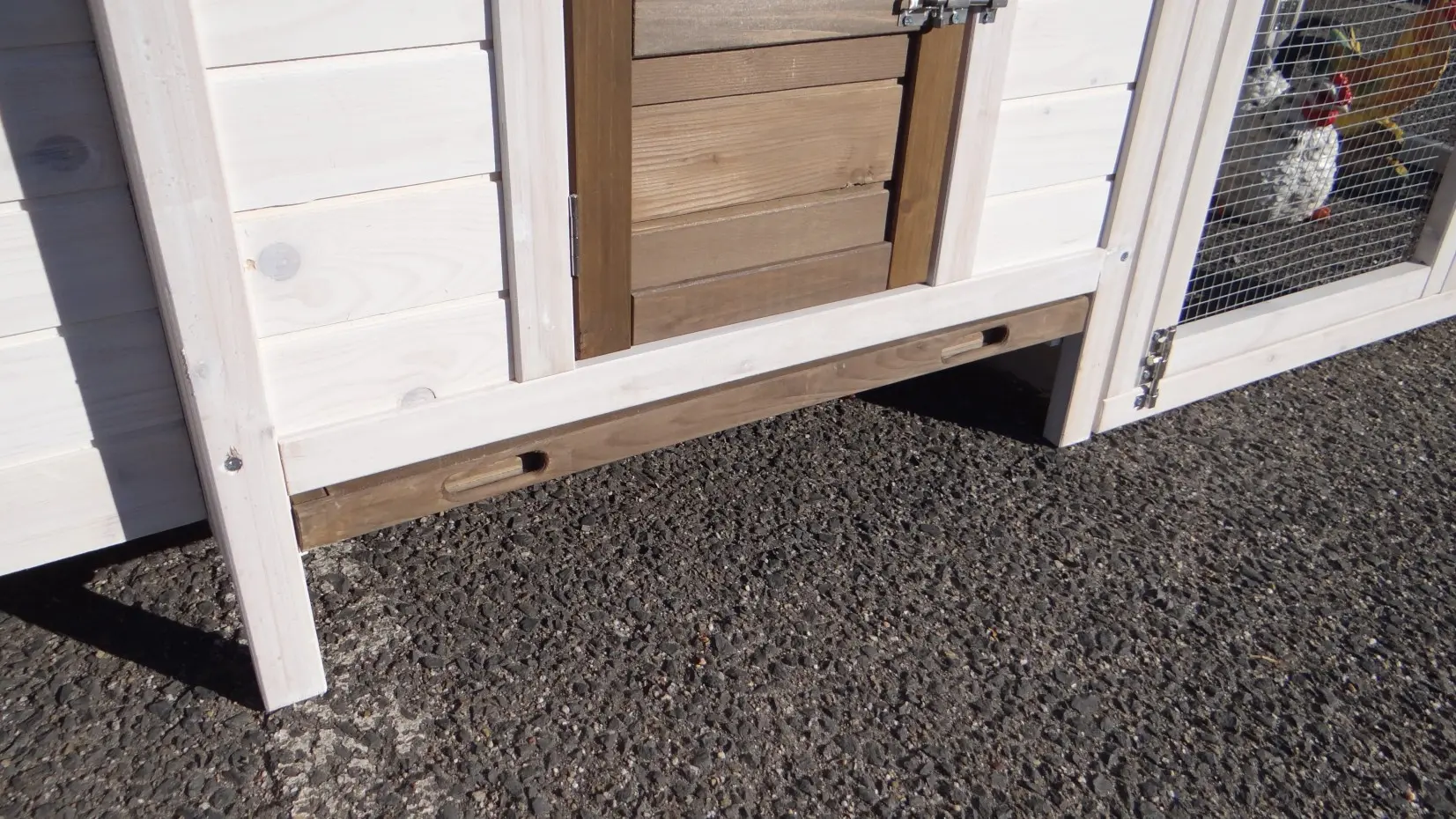 - This chicken coop is equipped with a nest box
