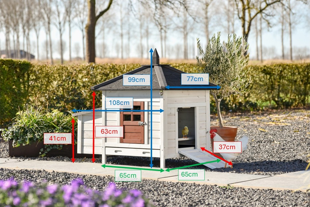 | Outer dimensions incl. roof and nest box (WxDxH) | 108x77x99cm |