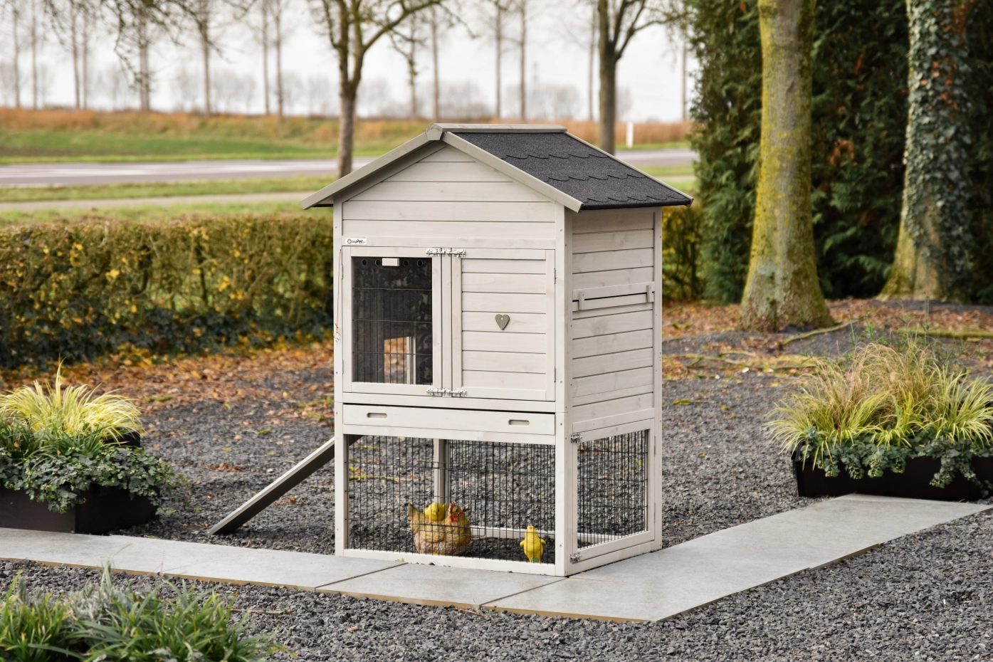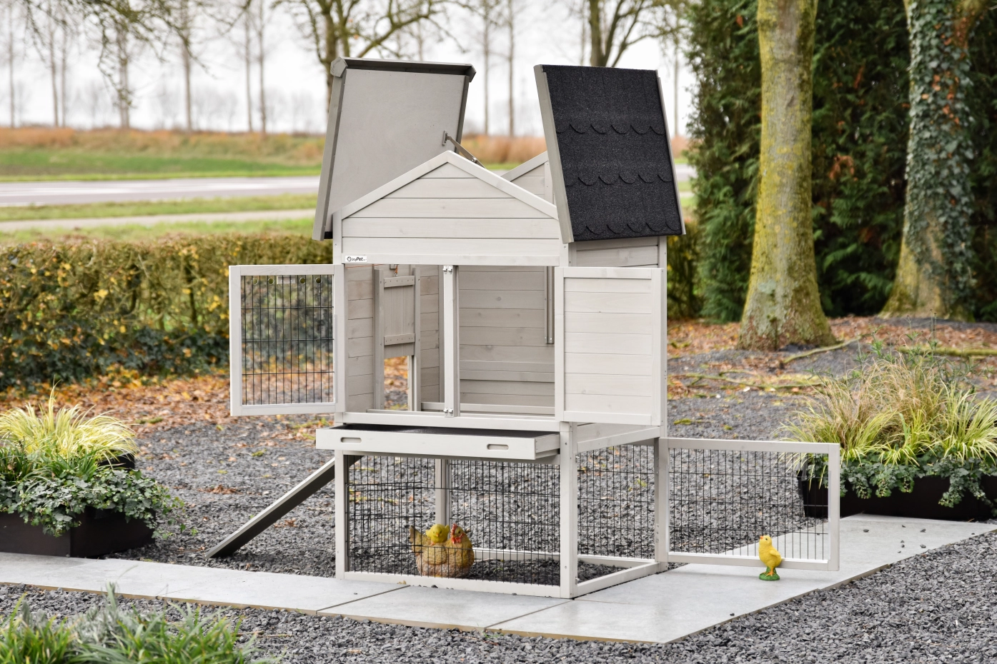 For optimal protection, the coop stands on rubber feet.