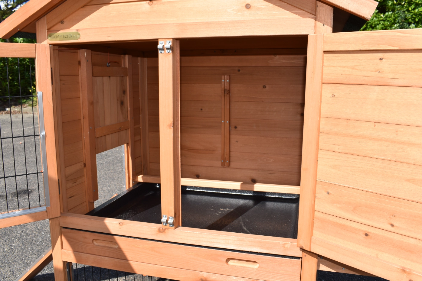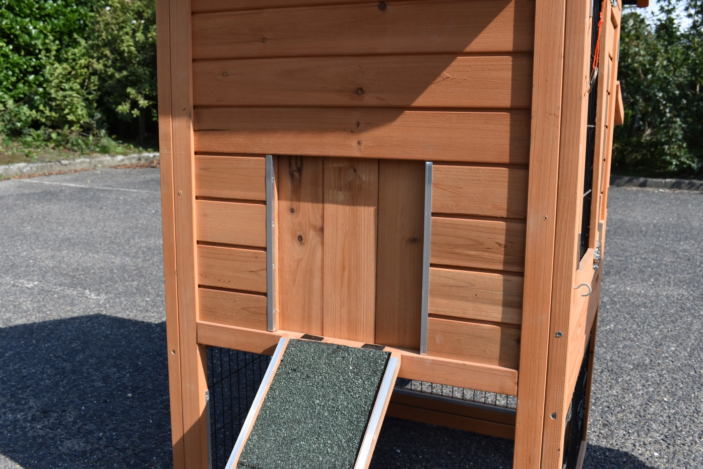 For optimal protection, the coop stands on rubber feet, making it very practical to use.
