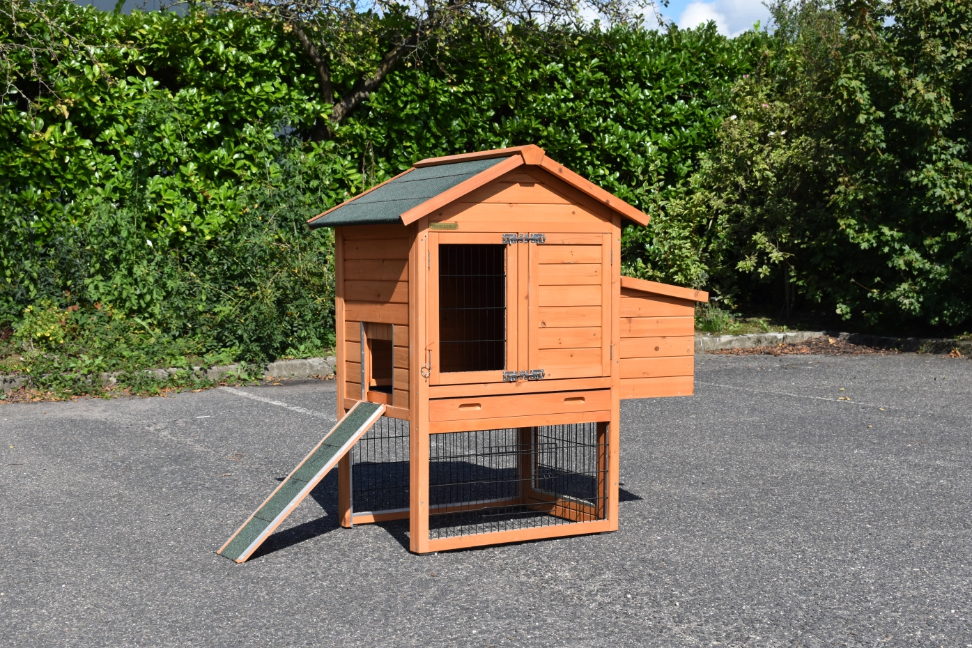 The wood, used for your pet house is a unique natural product which has been processed according to traditional methods in the country of origin, after careful selection. It is characteristic and unique in every way. This wood product has been manually processed. No single piece of wood is the same in shape, structure or color, so color shades are inevitable even within one piece of wood. Wind cracks, imperfections and the presence of large and small knots testify to their origin and years of growth. Bumps are usually manually updated with wood fill. Through use and through the influence of light, new pet houses will finally get a warmer color. Color differences in comparison with the show model or even among themselves are therefore usual. The pet house is stained in the colors as in the picture. You should do it once again to prevent mold and rot. You can easily order the stain together with the pet house.
